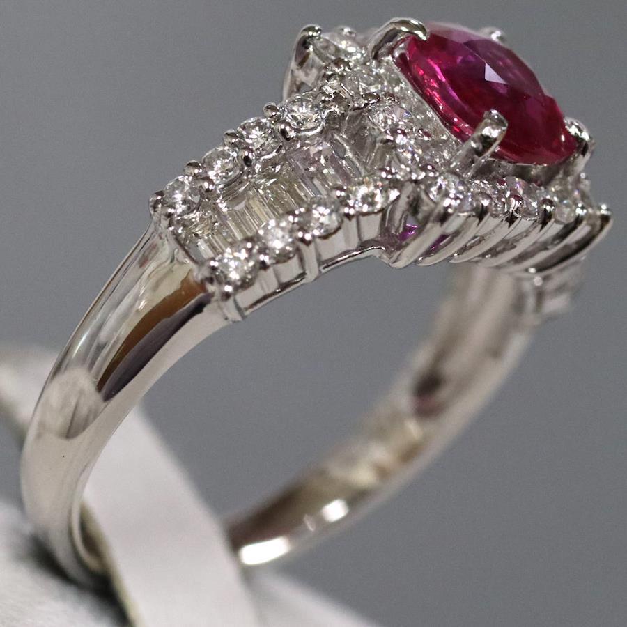 Pt900ダイヤモンド非加熱ルビーリングの中古品です。非加熱の天然ルビーと認める鑑別書が付属します。ルビーはピンクがかった赤色で照りがあります。ややインクルージョンがあり、肉眼でも一部確認できます。ダイヤモンドはややインクルージョンがありますが、照りよく輝きます。地金にはわずかに小傷があります。+---+---+---+---+---+。{状態}AB{素材}Pt900,ルビー,ダイヤモンド{サイズ}当店計測約#12.5{リング幅}約2-9mm。{その他}R1.072ct,D0.74ct,5.6g。{付属品}鑑別書{お問合せ商品番号}25106043+---+---+---+---+---+。