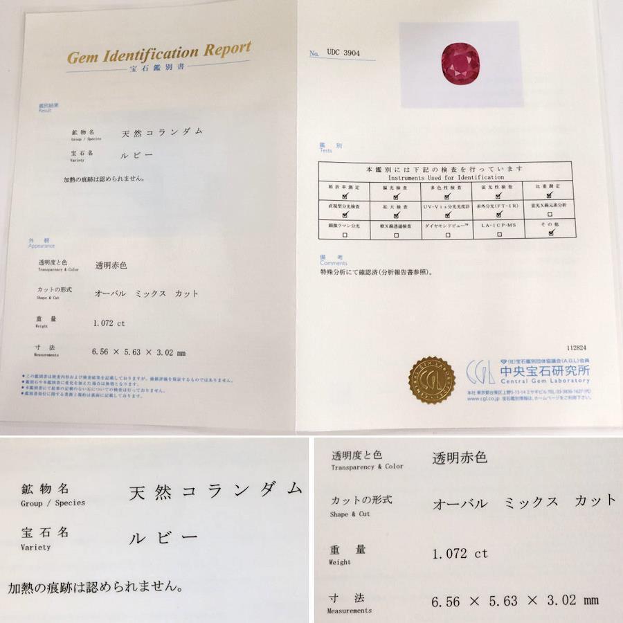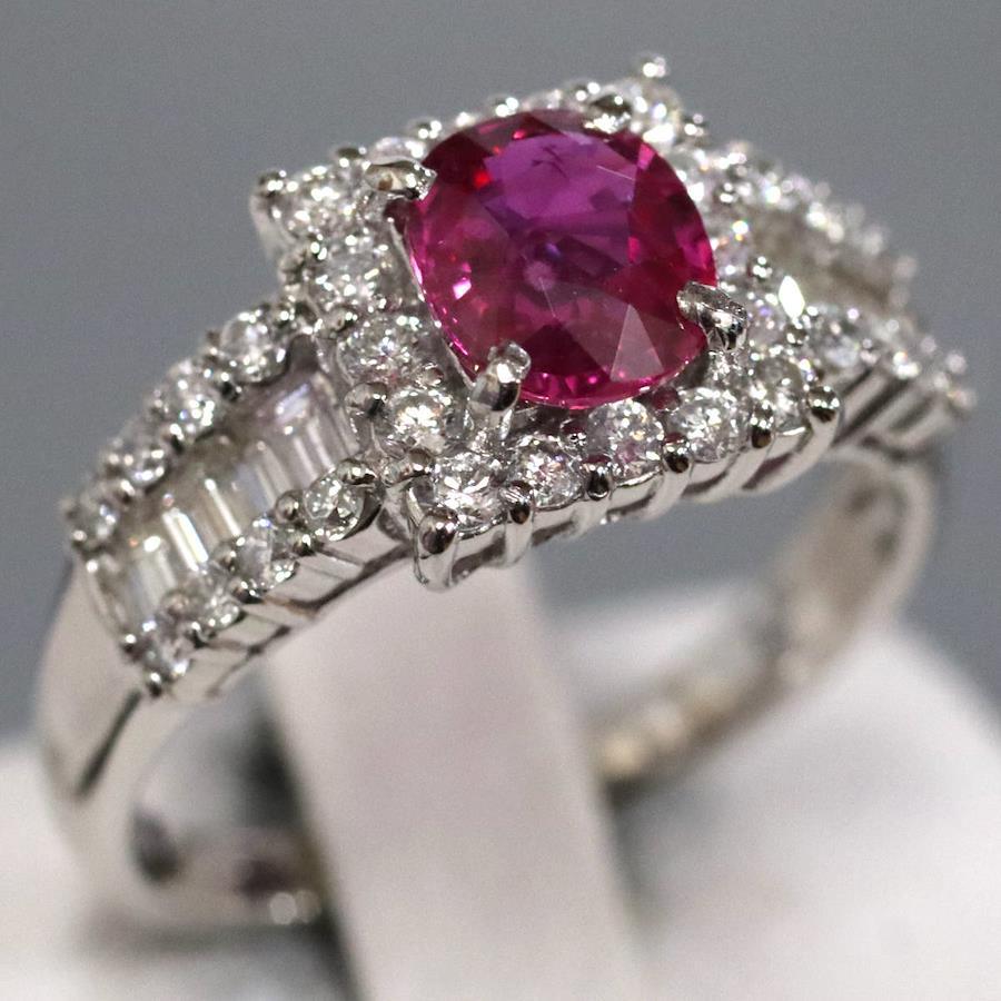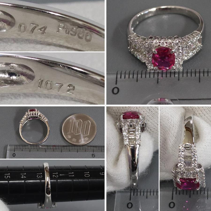 Pt900 Diamond Unheated Ruby Ring R1.072 D0.74 5.6g #12.5 Certificate