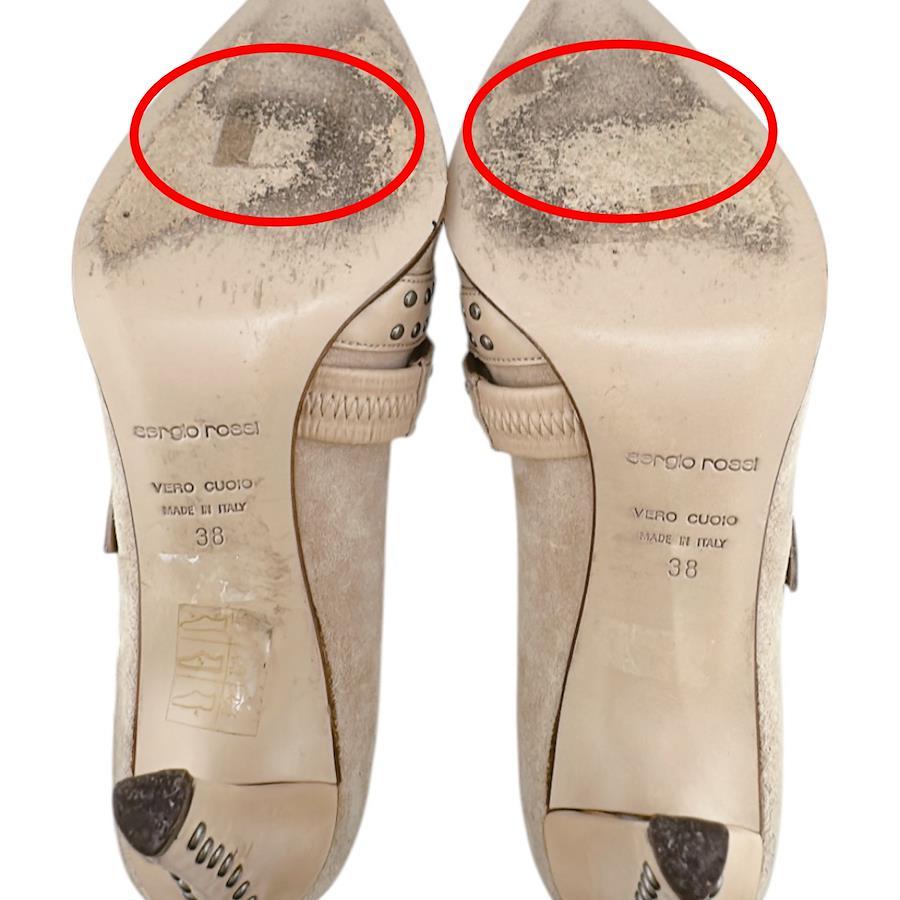 セルジオロッシのスエードのパンプスです!上品なベージュの記事にクールなベルトのデザインです!