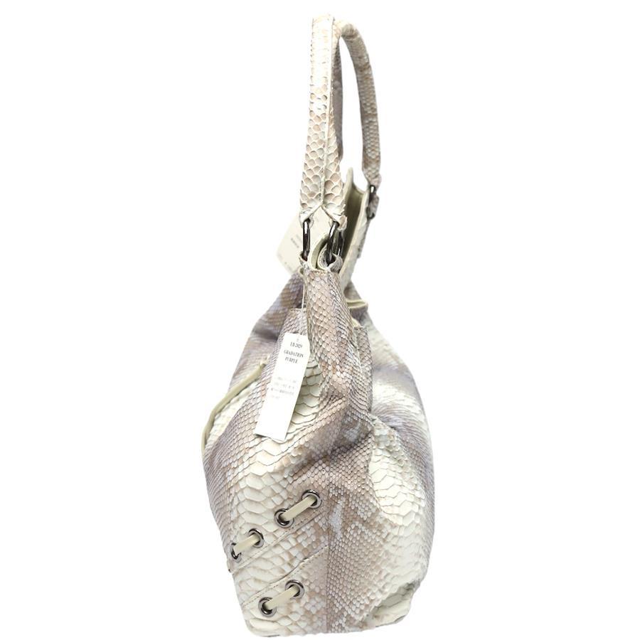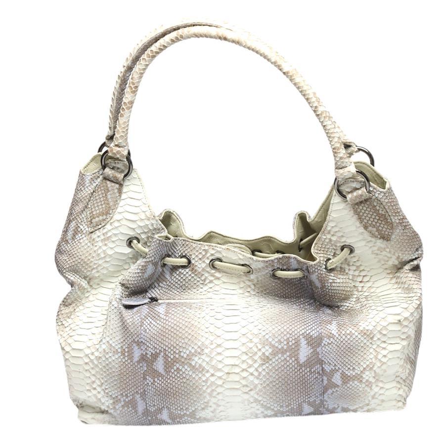 パープルの淡い色合いのパイソンのショルダーバッグ☆マグネット開閉で大変使いやすいバッグです。中には携帯ポケットとオープンポケット、ファスナーポケットと収納部も充実。容量もシッカリあるのでデイリーユースとして活躍できます。軽く丈夫なバッグですので末永くお使いいただけると思います♪