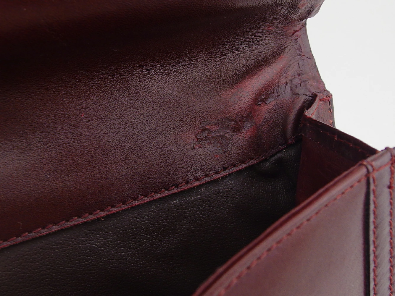 | コンディション | 全体の状態詳細:まだまだお使いいただけます。 社外リペア跡(外ポケット全面接着、スレ色着色、コバ割れ接着、内側一部合皮貼り付け、フラップ付け根内側切れコーティング)あり。その他 スレ&傷&汚れ(内側もあり) シミ 金具傷・ハゲ 臭い ヒビ割れ(フラップ付け根内側) などの使用感があります。 |