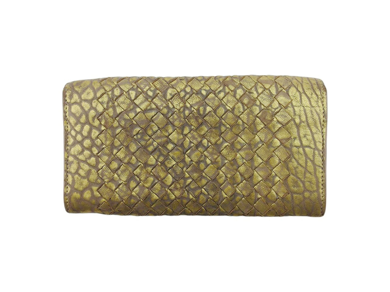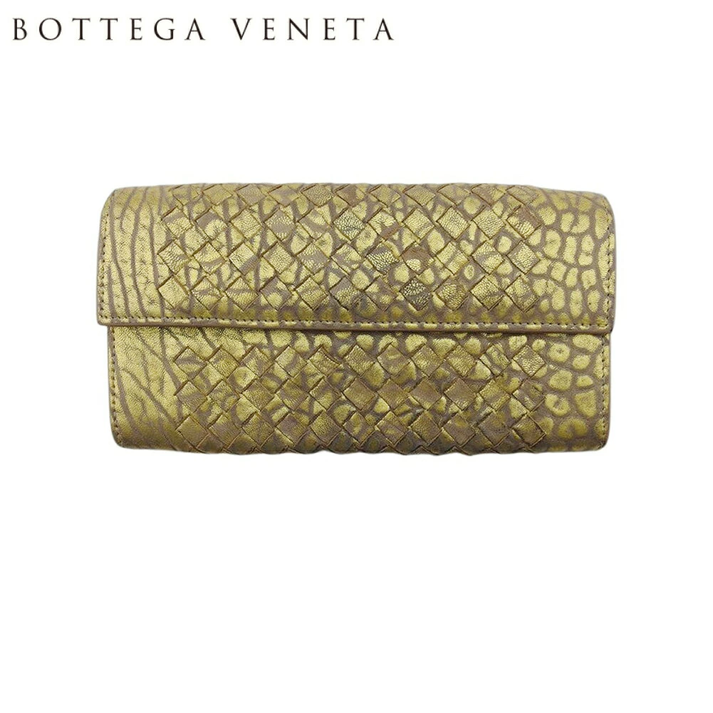 [Rakuten Fashion THE SALE ★ Up to 50% Off] Bottega Veneta Long Wallet in Intrecciato Gold, Gray, and Beige. Men's Pre-owned, High-End Vintage Brand.