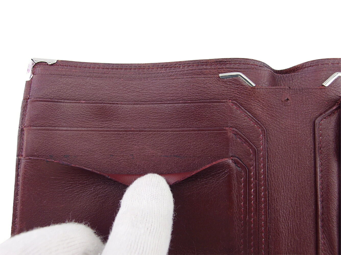| コンディション | 全体の状態詳細:大きなダメージもなく、まだまだ十分ご使用いただけます。 外側:レザー(反り&変形、傷小)、装飾シルバー金具(傷、金具周辺に汚れ)あり。 内側:レザー(傷、センターに穴)、カード入れ(カード跡、汚れ、スレ)、札入れ(汚れ)、小銭入れ(外側シワ&タルミ、内側汚れ)あり。 その他 目立たない スレ 汚れ 傷 などの一般的使用感があります。 |