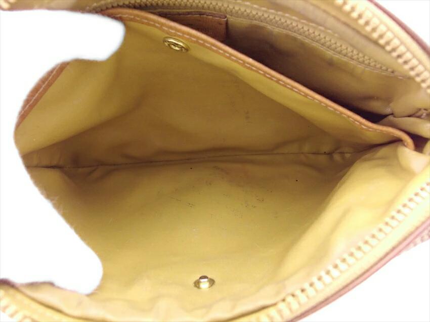 | コンディション | 全体の状態詳細:使用感がありますが、お使いいただけます。 社外リペア跡(内側上部端破れ補強接着)あり。その他 スレ&汚れ(内側&ポケットもあり) 傷(内側) 黒ずみ 金具ハゲ 擦り切れ(開口部内側) ヒビ割れ(ストラップ) などの使用感があります。 |