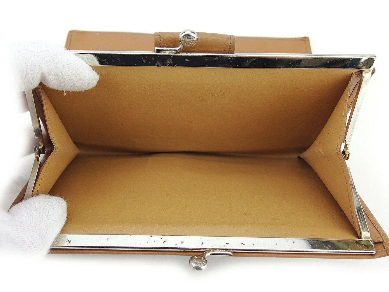 | コンディション | 全体の状態詳細:まだまだお使いいただけます。 社外リペア跡(革スレ着色、角キレ接着)あり。その他 スレ&汚れ(内側&札入れ&小銭入れ&ポケットもあり) 傷(内側) 金具ハゲ(強) 変色(がま口金具) 若干のキレ(内パイピング2ヵ所程) 切り取り跡(ポケット内) がま口硬め などの使用感があります。 |