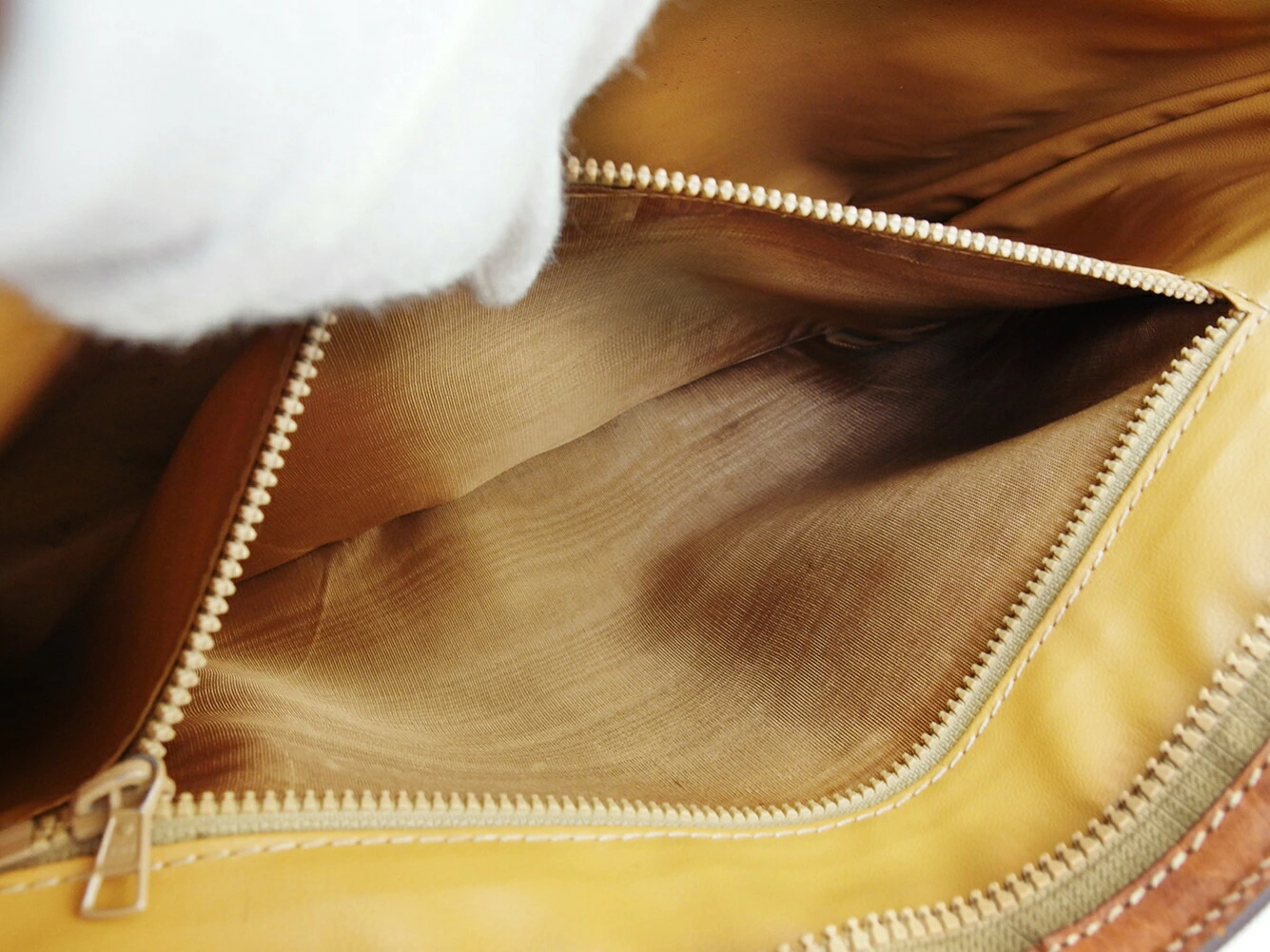 | コンディション | 全体の状態詳細:大きなダメージもなく、まだまだ十分ご使用いただけます。 外側:装飾レザー部分(汚れ、黒ずみ、角スレ、傷)、ファスナー金具・金属金具類(傷、汚れ、くすみ、コーティングハゲ)あり。 内側:裏地(汚れ、傷、底部分に小さな穴1箇所)、ファスナー金具(コーティングハゲ)あり。 その他、目立たない傷 汚れ などの一般的使用感がある場合がございます。 |