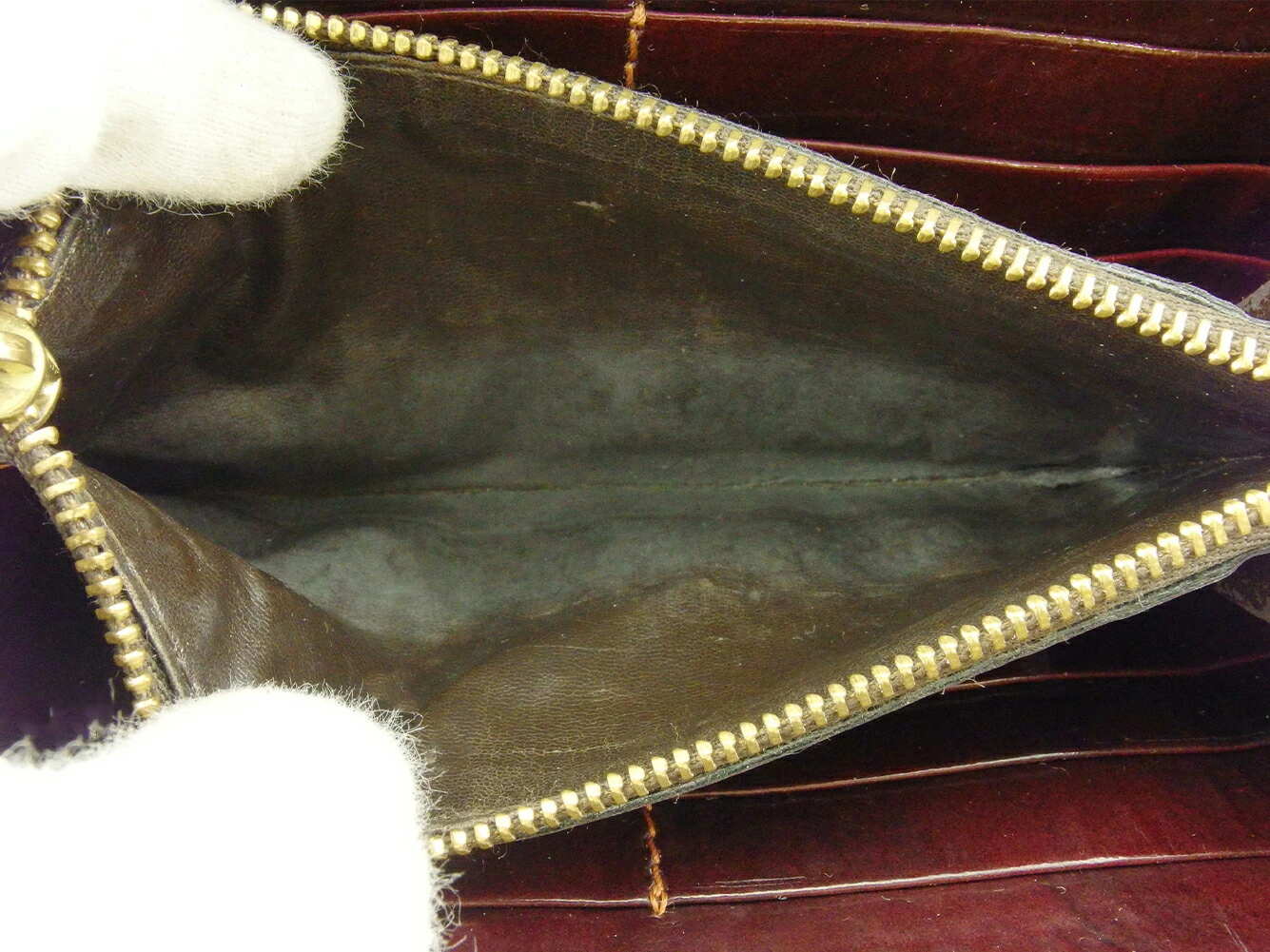 | コンディション | 全体の状態詳細:スレ&汚れ(内側&札入れ&小銭入れ&カード入れ&ポケットもあり) 傷 金具傷・ハゲ エナメル部分ヒビ割れ(所々) コーティングハガレ(外ファスナープル革) などの使用感があります。 ハガレ(札入れマチ横)がある為、使用の際はご注意下さい。 |