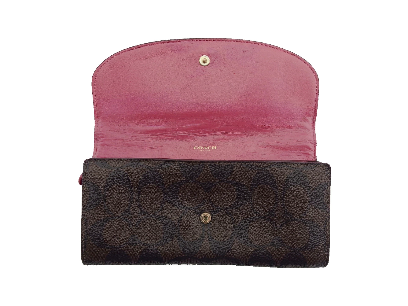 [Rakuten Fashion THE SALE ★ Up to 50% Off] Coach Signature Long Wallet in Rose, Brown, and Dark Brown. Women's. Pre-owned. High-end vintage brand.