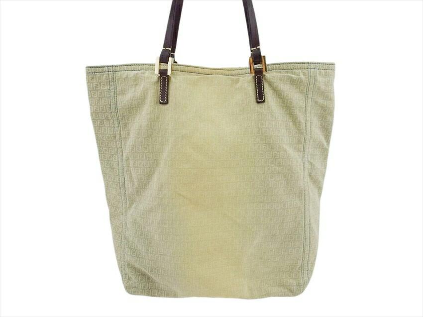 [Rakuten Fashion THE SALE ★ Up to 50% Off] Fendi Zucchino Tote Bag in Beige, Blue, and Brown. Women's. Pre-owned. High-end vintage.