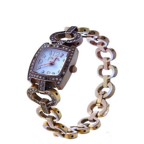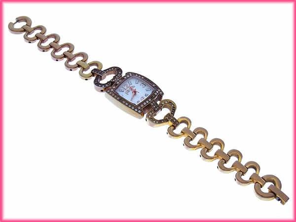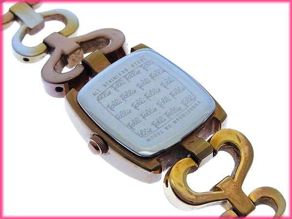 [Rakuten Fashion THE SALE ★ Up to 50% Off] Folli Follie Square Face Watch with Rhinestones, Gold and Clear, Women's, Pre-Owned, Folli Follie, High-End Brand, Vintage