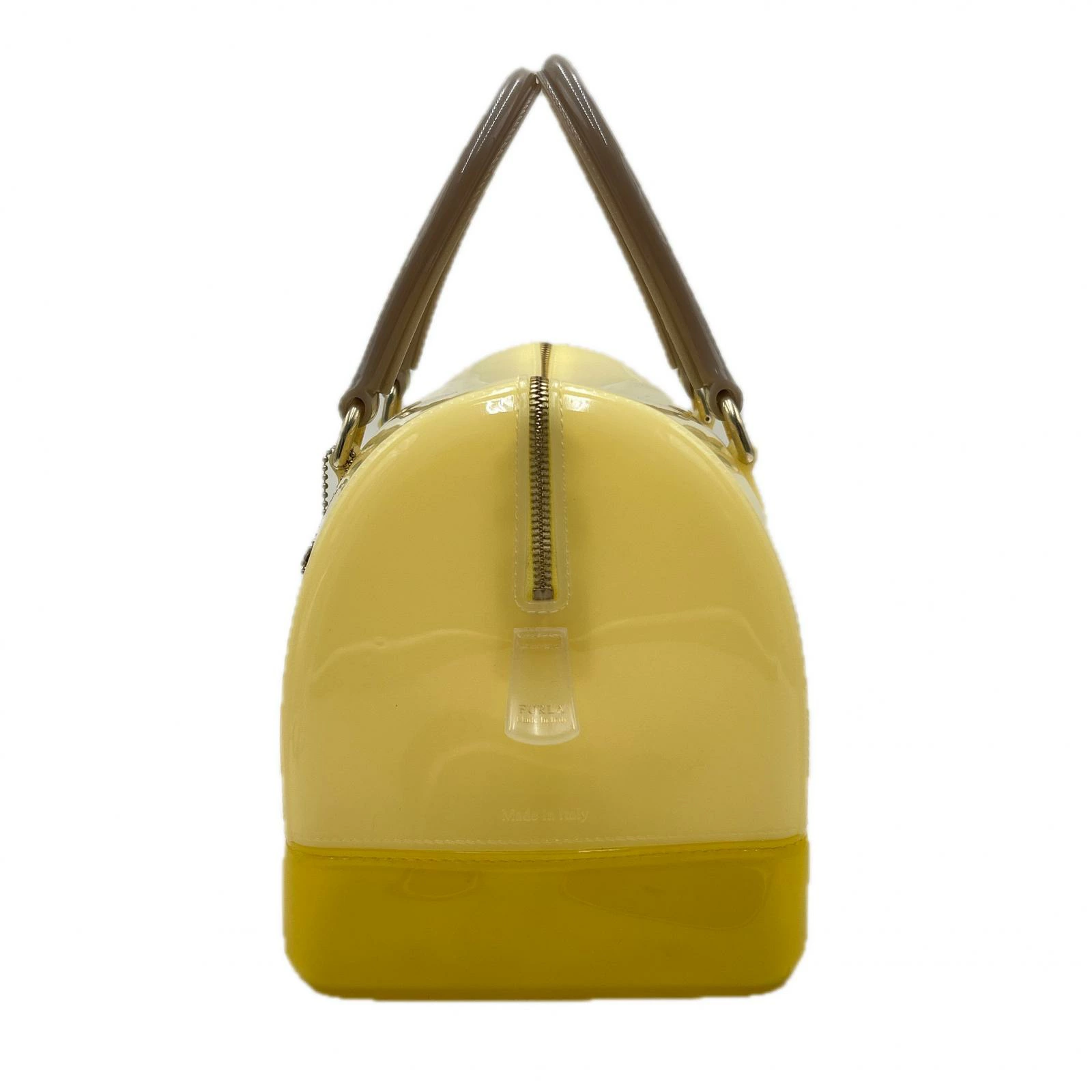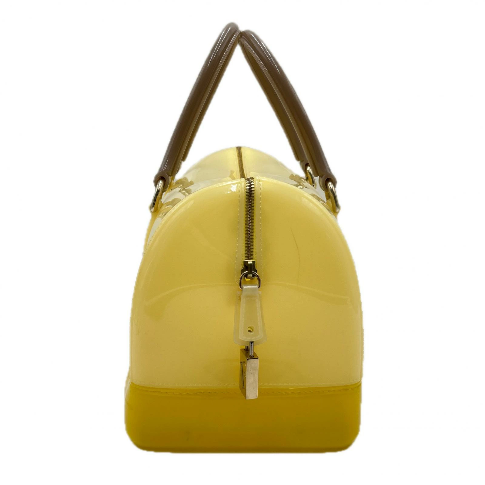 | スタッフコメント | まるでキャンディのような透明感とツヤ感が特徴のFURLA(フルラ)の人気アイテム、 「キャンディバッグ」。 明るく元気な印象を与えるイエローカラーと、落ち着いたブラウンのハンドルの組み合わせが大人かわいいデザイン。 耐久性に優れたPVC素材を使用しており、雨の日でも安心して持ち運べます。 丸みを帯びたフォルムと広めのマチで、見た目以上に収納力があり、スマホ、財布、コスメなど日常アイテムがしっかり収まります。 |