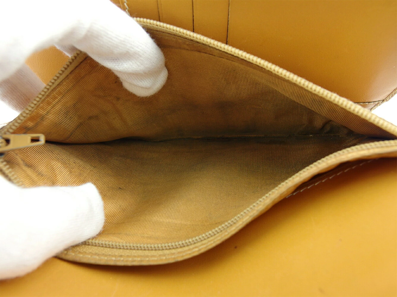 | コンディション | 全体の状態詳細:まだまだお使いいただけます。 社外リペア跡(角切れコーティング、札入れ底部当て布貼り付け、札入れ両横破れ3.5cm程補強接着)。小銭入れに、スレ&黒ずみあり。その他 スレ&汚れ(内側&札入れ&ポケットもあり) 傷&ペン跡(内側) ほつれ(角) 金具ハゲ 破れ(ポケット底部) などの使用感があります。 |