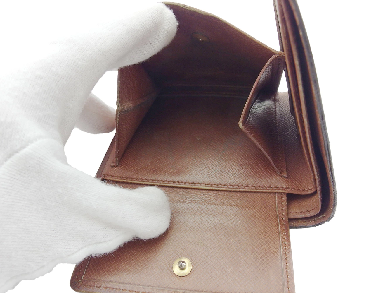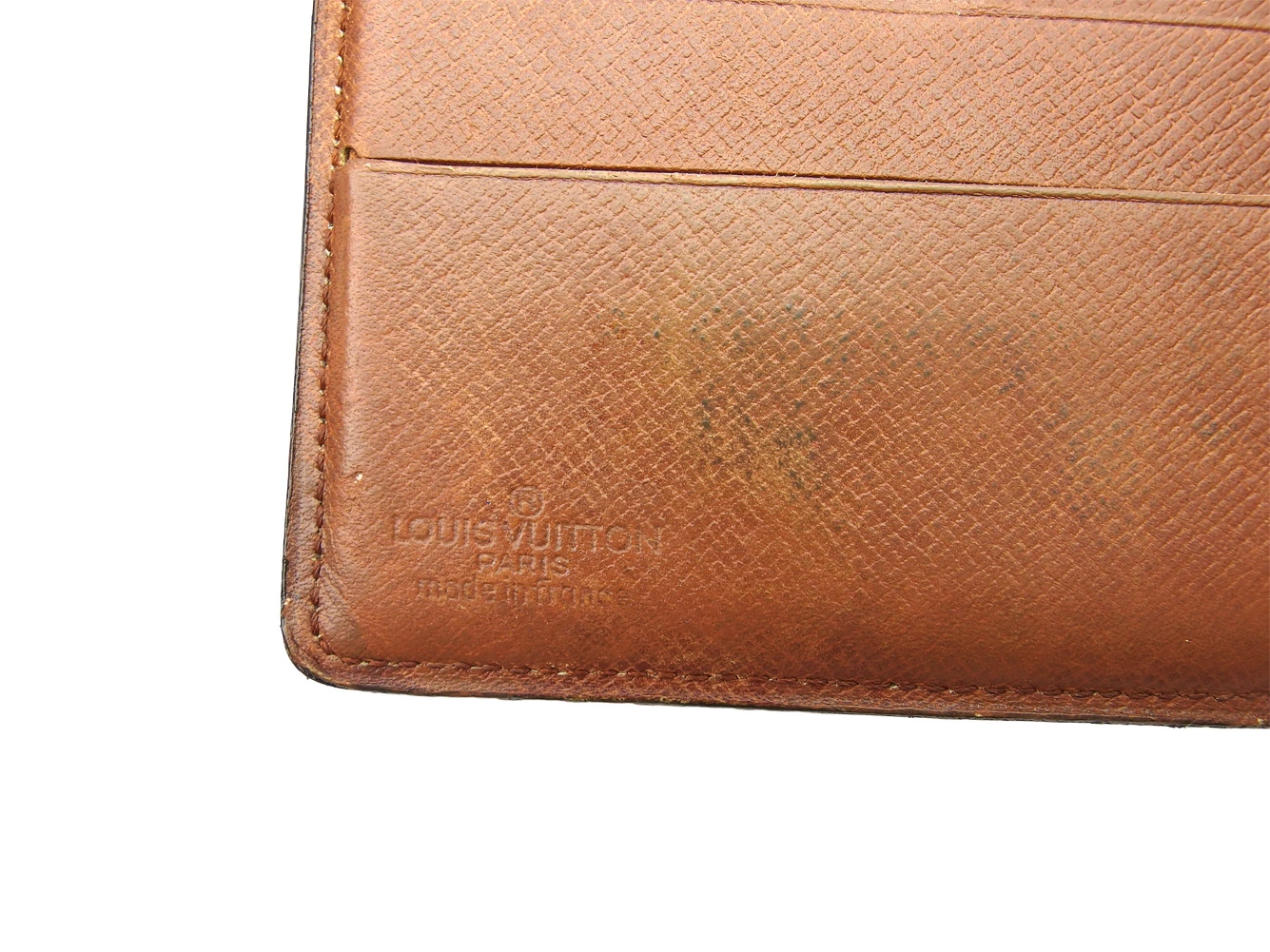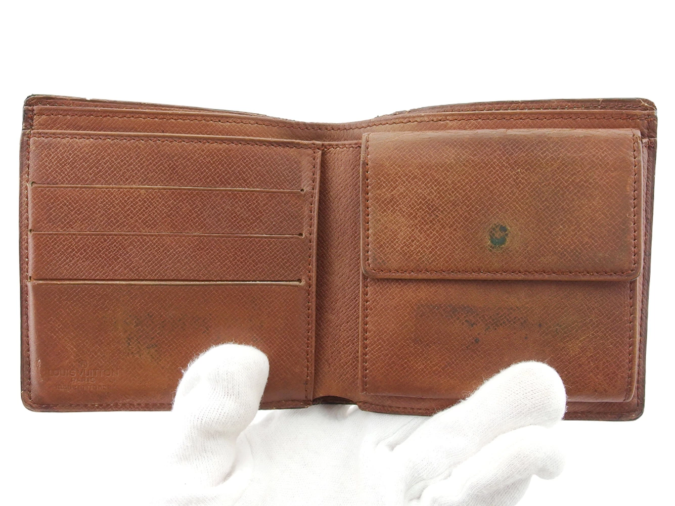 | コンディション | 全体の状態詳細:まだまだお使いいただけます。 社外リペア跡(内側着色)あり。その他 スレ&汚れ(内側&札入れ&小銭入れ&カード入れ&ポケットもあり) ほつれ(角2ヵ所) シミ(札入れ) ヒビ割れ(角2ヵ所&札入れ上部&フラップ上部) コバ割れ などの使用感があります。 |