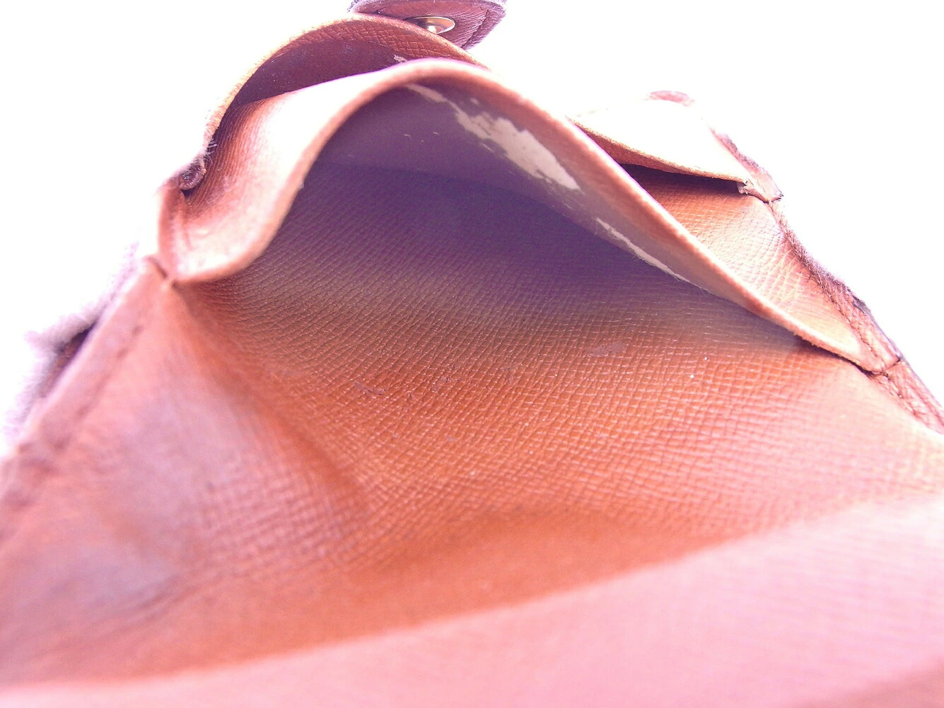 | コンディション | 全体の状態詳細:使用感がありますが、お使いいただけます。 社外リペア跡(角&フラップ接着、内側左下4cm程補強接着、札入れハガレ貼り替え)あり。ファスナー閉める時少し重め。その他 スレ&汚れ(内側&札入れ&小銭入れ&カード入れ&ポケットもあり) 傷(小銭入れ) 角スレ 金具ハゲ コバスレ・割れ ヒビ割れ小&ほつれ(角付近&フラップ付け根) キレ小(札入れ上部2ヶ所程) ハガレ(ポケット×2・使用注意) など使用感があります。 |