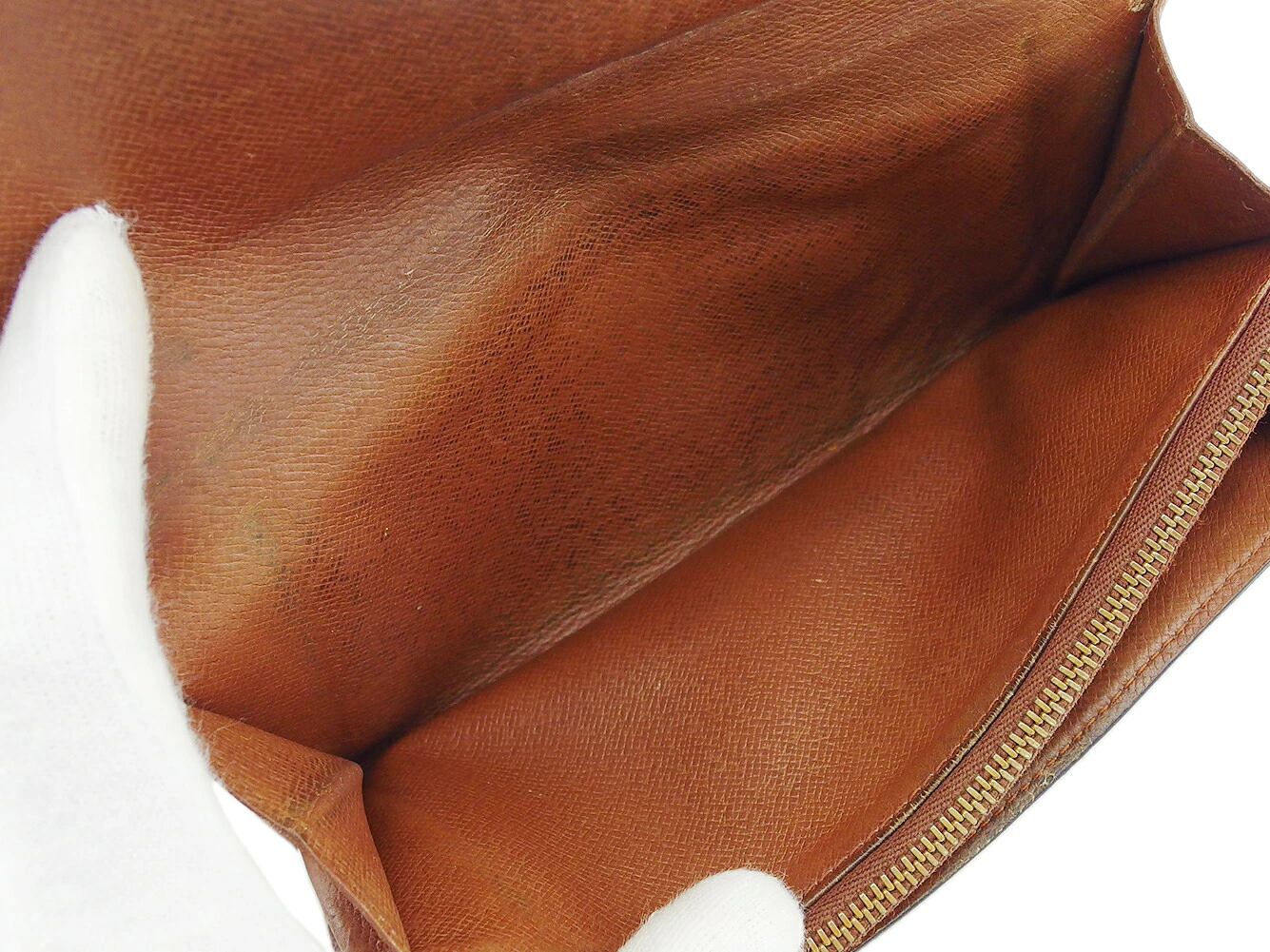 | コンディション | 全体の状態詳細:ダメージが大きいですが、ご使用いただくことは可能です。 社外リペア跡(財布下部のヒビ割れ補修、縁部分のヒビ割れ&キレの補修及び着色)あり。 外側:モノグラムキャンバス(縁部分&財布下部に補修跡、蓋サイド反り気味)、ボタン(傷、メッキハゲ)あり。 内側:レザー(黒ずみ、ヒビ割れ)、小銭入れ(ファスナー金具欠損※開閉可能、内側に汚れ&傷)、札入れ(内側に汚れ&傷)あり。 その他 目立たない スレ 汚れ 傷 などの一般的使用感があります。 |