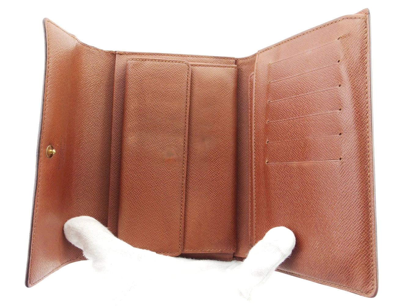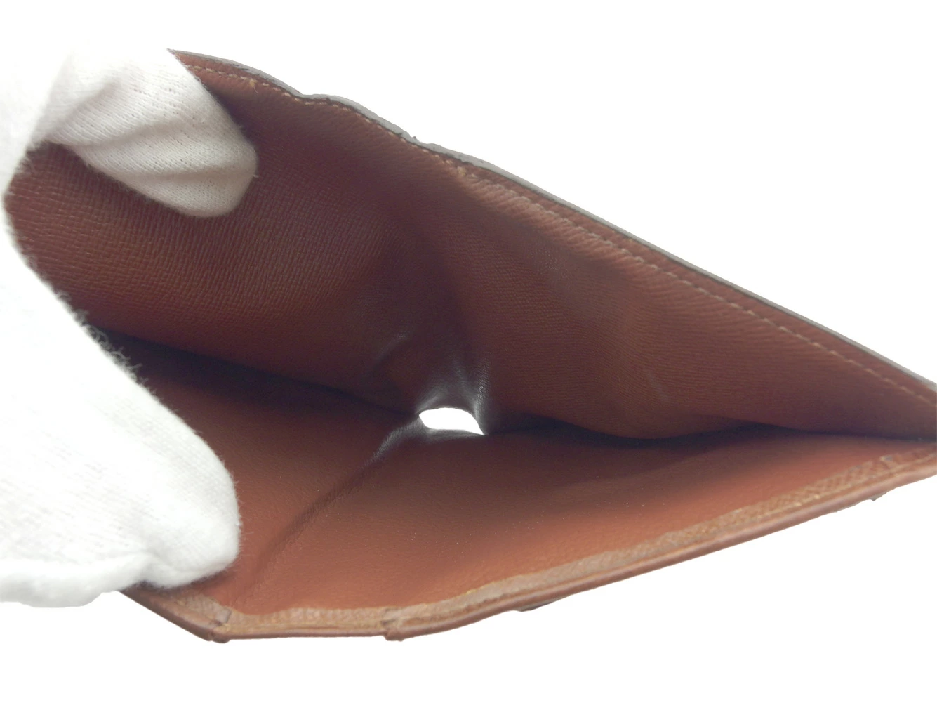 | コンディション | 全体の状態詳細:まだまだお使いいただけます。 社外リペア跡(札入れ&ポケット合皮貼り付け、角接着、ケース等着色)あり。その他 スレ&汚れ(内側&札入れ&小銭入れ&カード入れ&ポケット&ケースもあり) 傷(クリアポケット) 切れ0.7cm程(カード入れ上部端) ほつれ&ヒビ割れハガレ(角) コバ割れ 金具傷・ハゲ ハガレ素材付着(ポケット1ヵ所) などの使用感があります。 |
