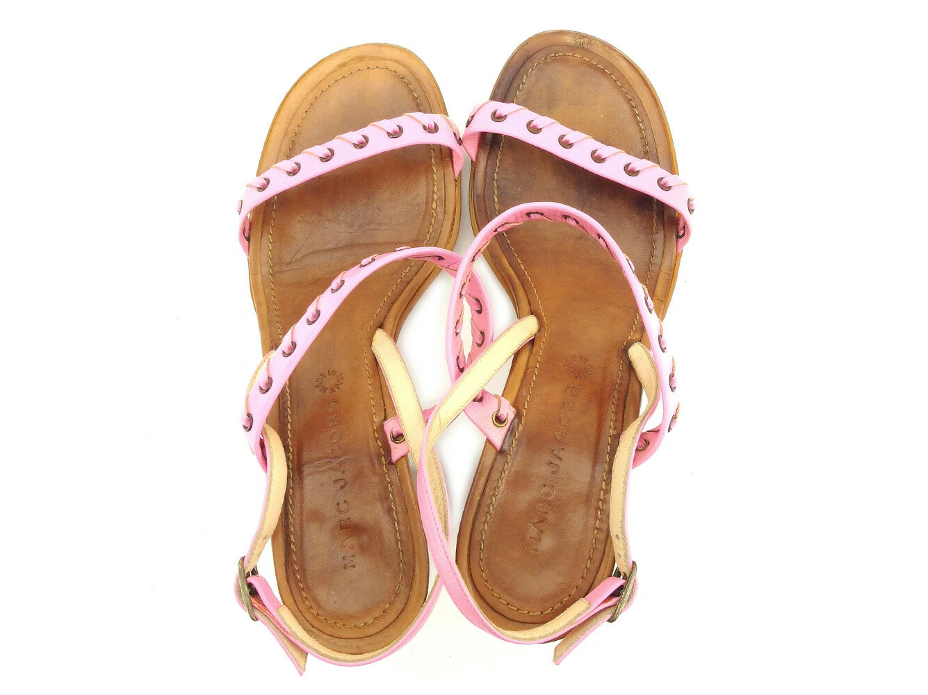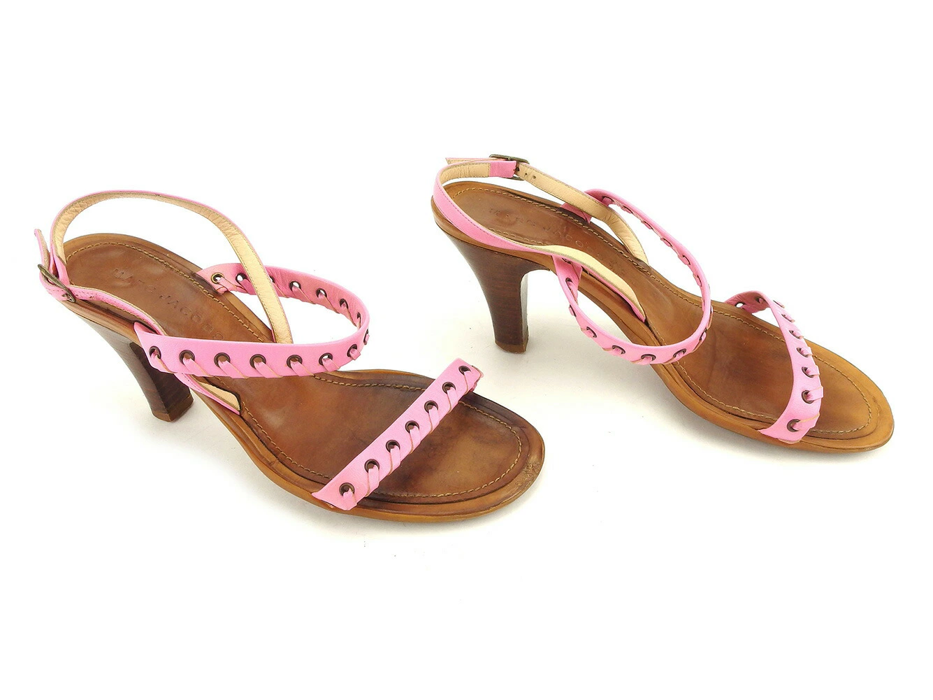 [Rakuten Fashion THE SALE ★ Up to 50% Off] MARC JACOBS Sandals, Double Band, Slingback, Stack Heel, Pink, Brown, Gold, Women's, Pre-owned, High-End, Vintage