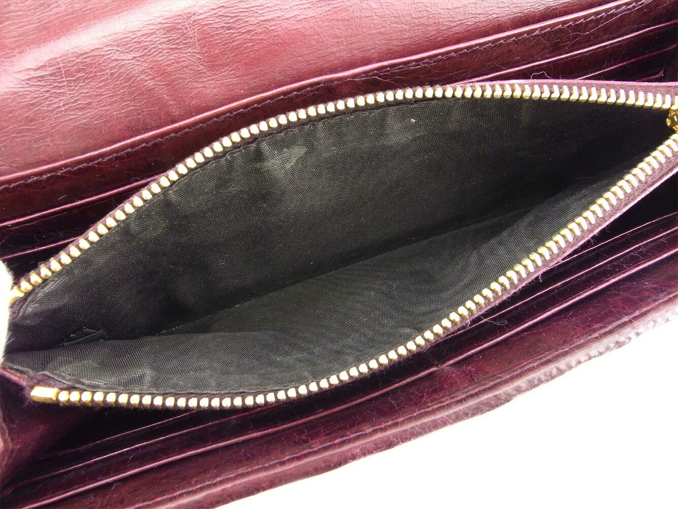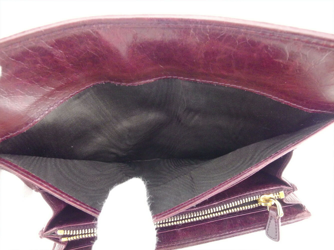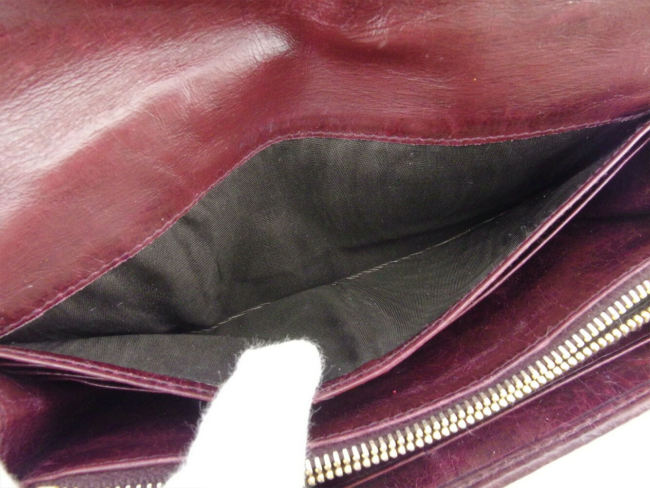 | コンディション | 全体の状態詳細:まだまだ十分にお使いいただけます。 社外リペア跡(スレ色着色、角切れコーティング)あり。その他 スレ&汚れ(内側&小銭入れ&カード入れ&ポケットもあり) 傷(内側&札入れ) 角スレ 金具ハゲ コバ割れ(ファスナープル革付け根) など使用感があります。 |