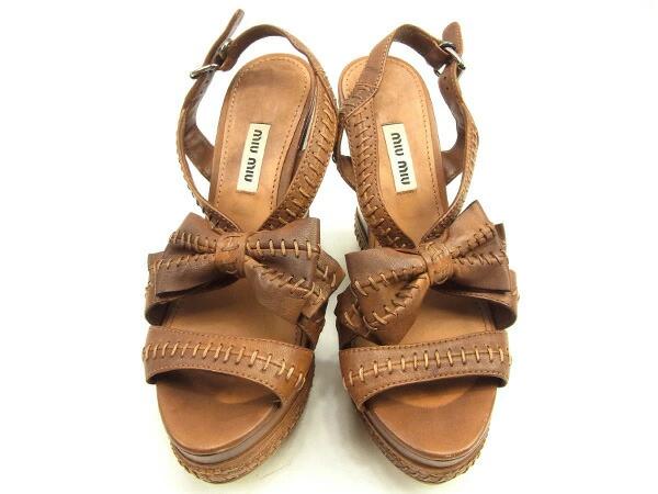 [Rakuten Fashion THE SALE ★ Up to 50% Off] Miu Miu Sandals with Ribbon Motif, Brown, Women's, Pre-owned, High-End, Vintage
