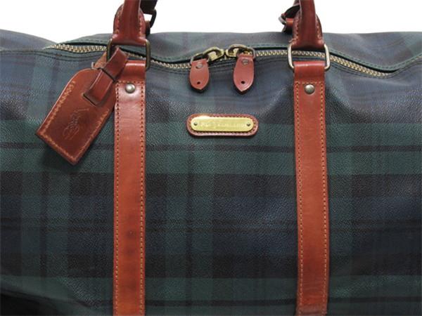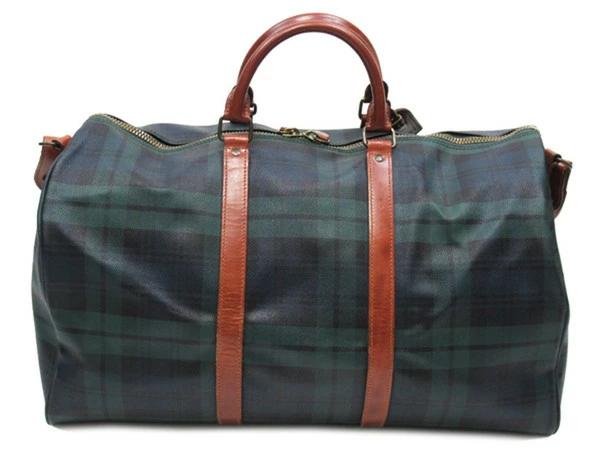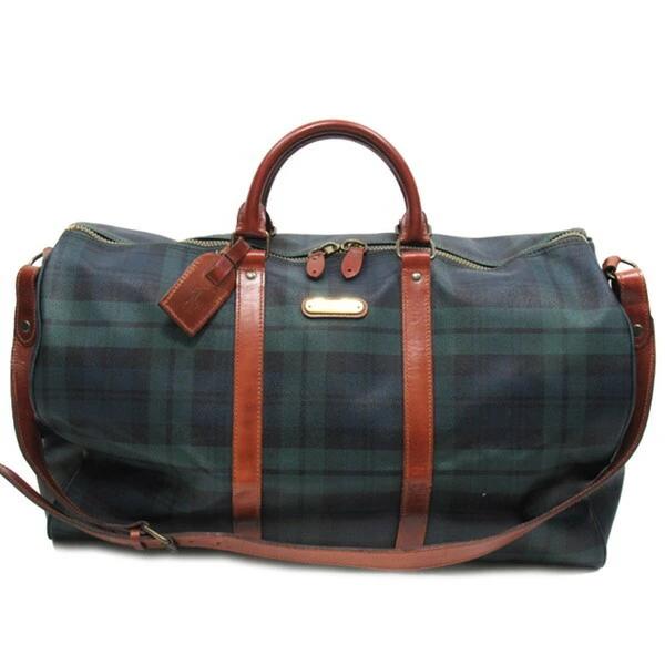 [Rakuten Fashion THE SALE ★ Up to 50% Off] Polo Ralph Lauren Boston Bag, Check Pattern, 2-Way Shoulder Bag, Green, Navy, Brown, Women's, Pre-Owned, POLO RALPH LAUREN, High-End Brand, Vintage