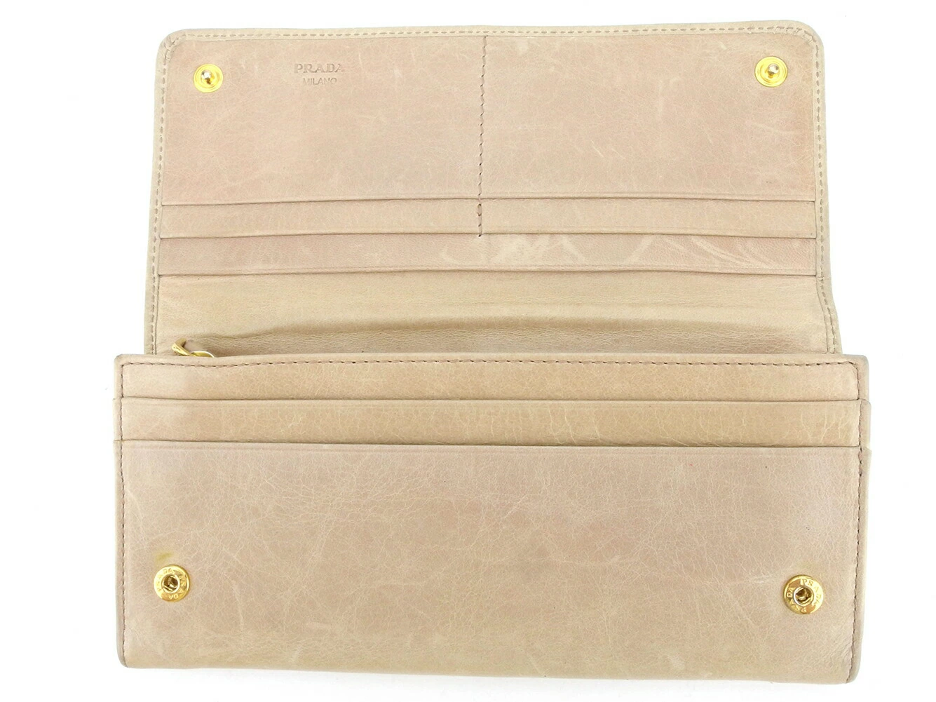 | コンディション | 全体の状態詳細:まだまだお使いいただけます。 スレ&汚れ(内側&札入れ&小銭入れ&カード入れ&ポケットもあり) 傷(内側もあり) 金具傷・ハゲ 変色(主に外側) コバヒビ割れ(内ファスナープル革付け根) 湿り気(小銭入れ&ポケット) ベタつき小(カード入れ×6・使用注意) など使用感があります。 |