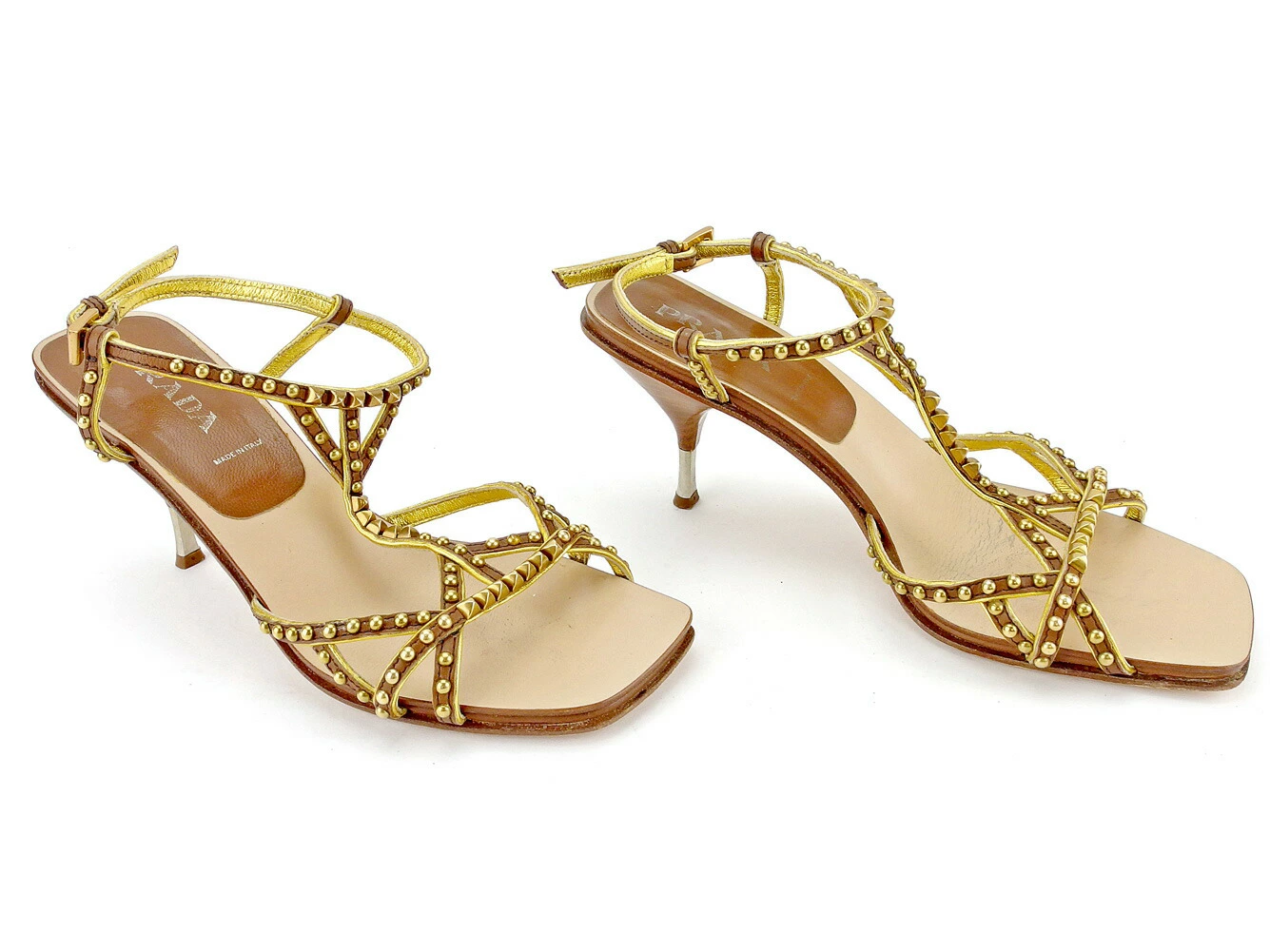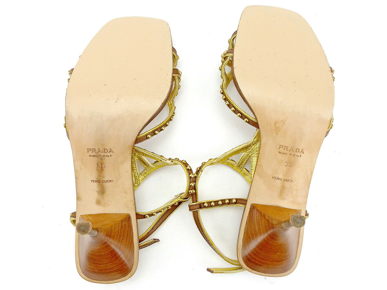 [Rakuten Fashion THE SALE ★ Up to 50% Off] Prada Sandals in Brown and Gold, Women's, Pre-owned, High-End, Vintage