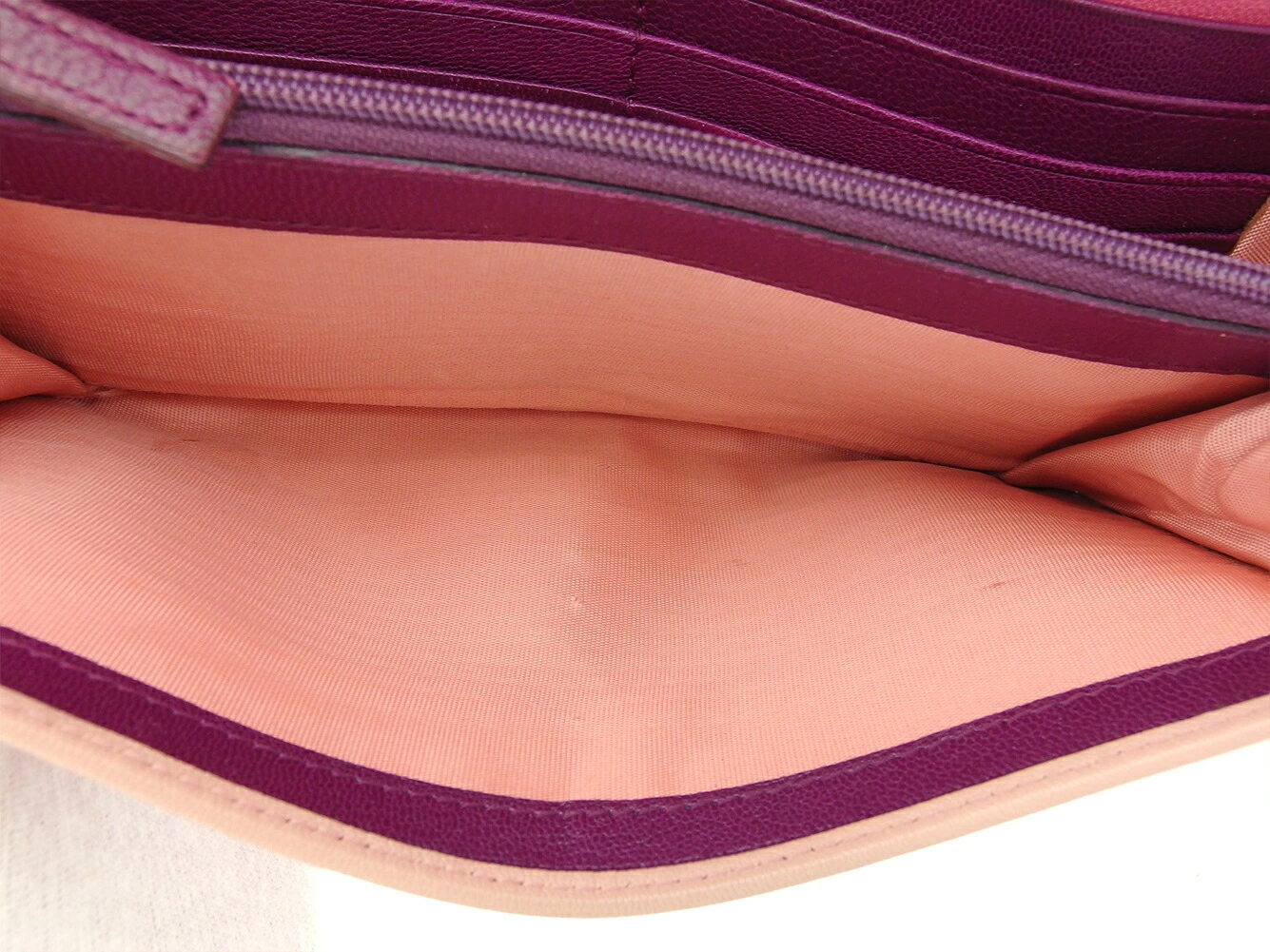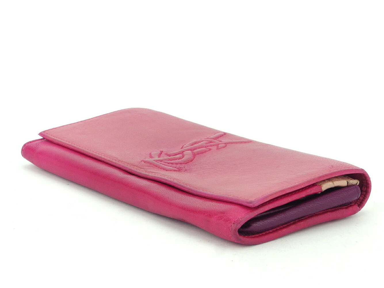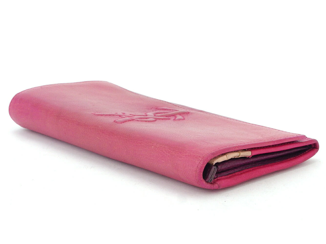 [Rakuten Fashion THE SALE ★ Up to 50% Off] Saint Laurent Long Wallet with YSL Logo in Pink and Purple. Men's. Pre-owned. High-End Brand. Vintage.