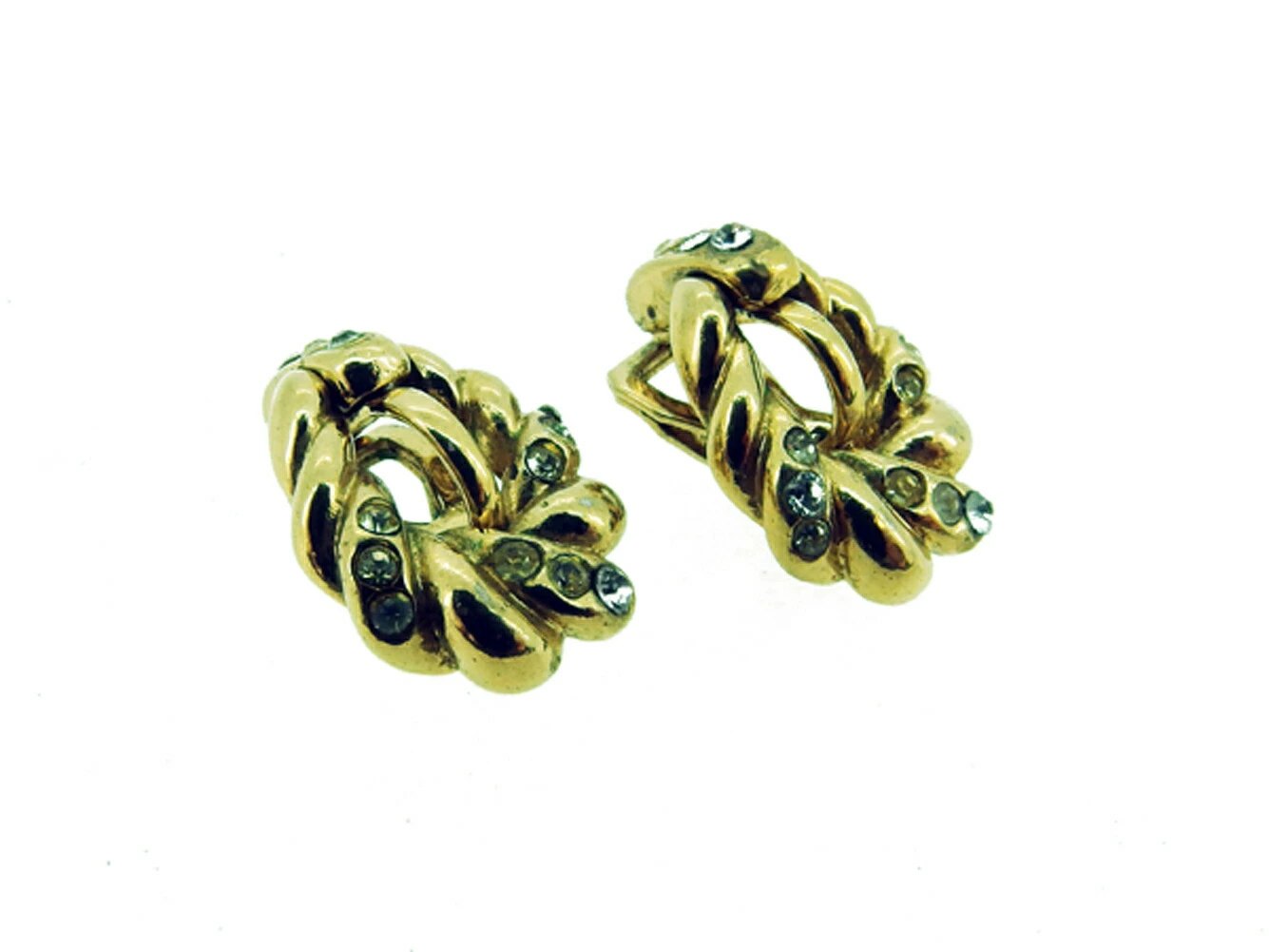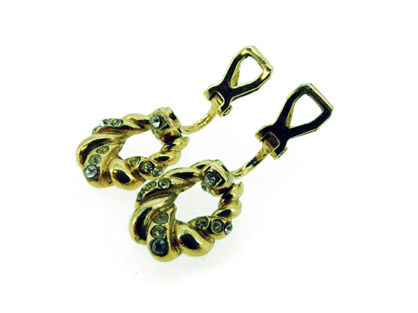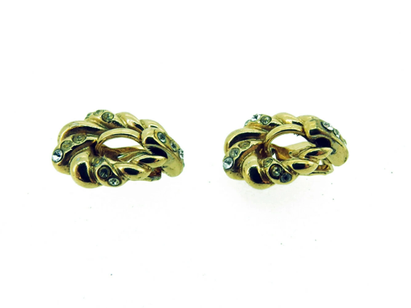 [Rakuten Fashion THE SALE ★ Up to 50% Off] Saint Laurent Twist Motif Earrings with Rhinestones, Gold, Men's, Pre-owned, High-End, Vintage