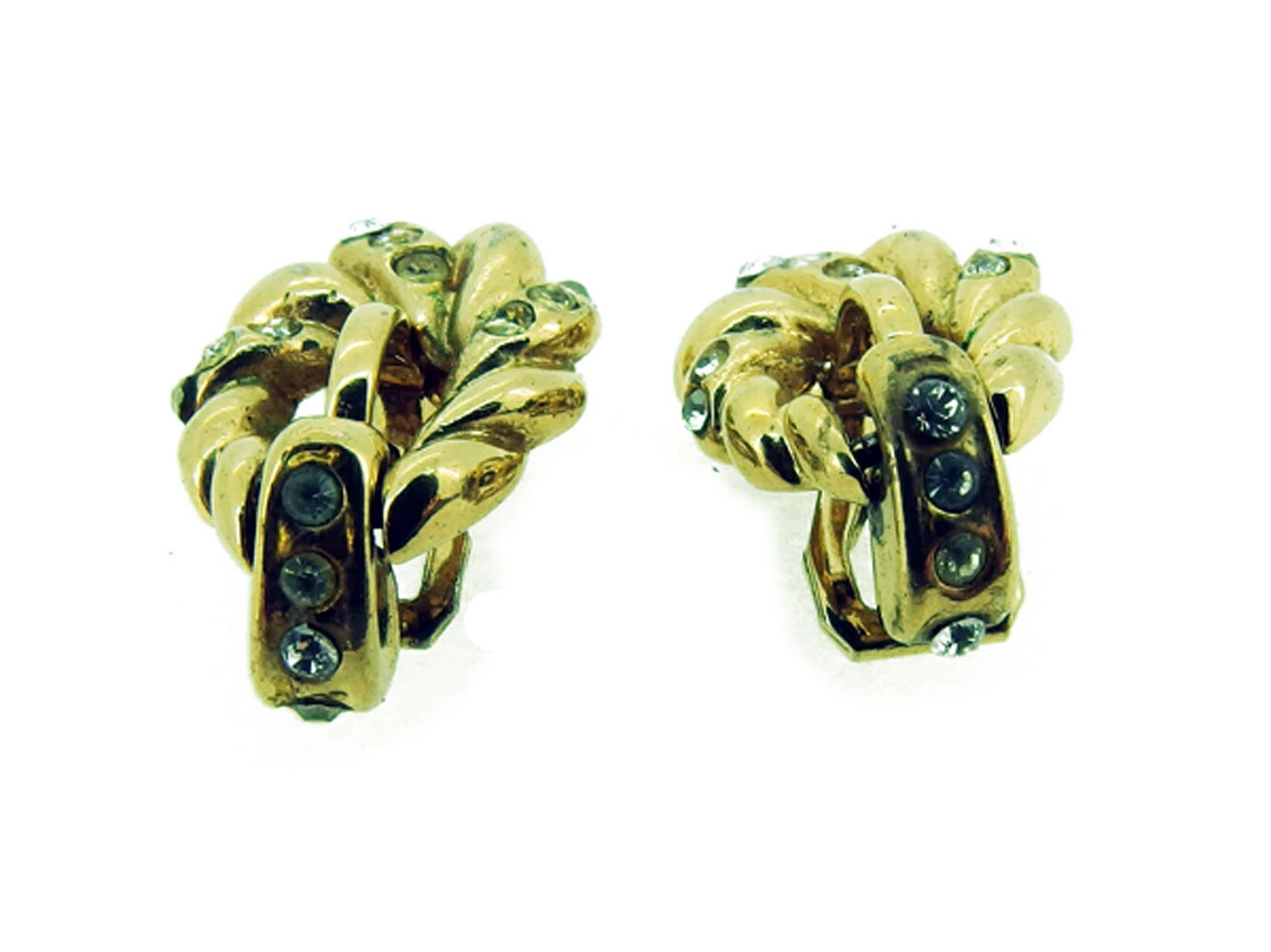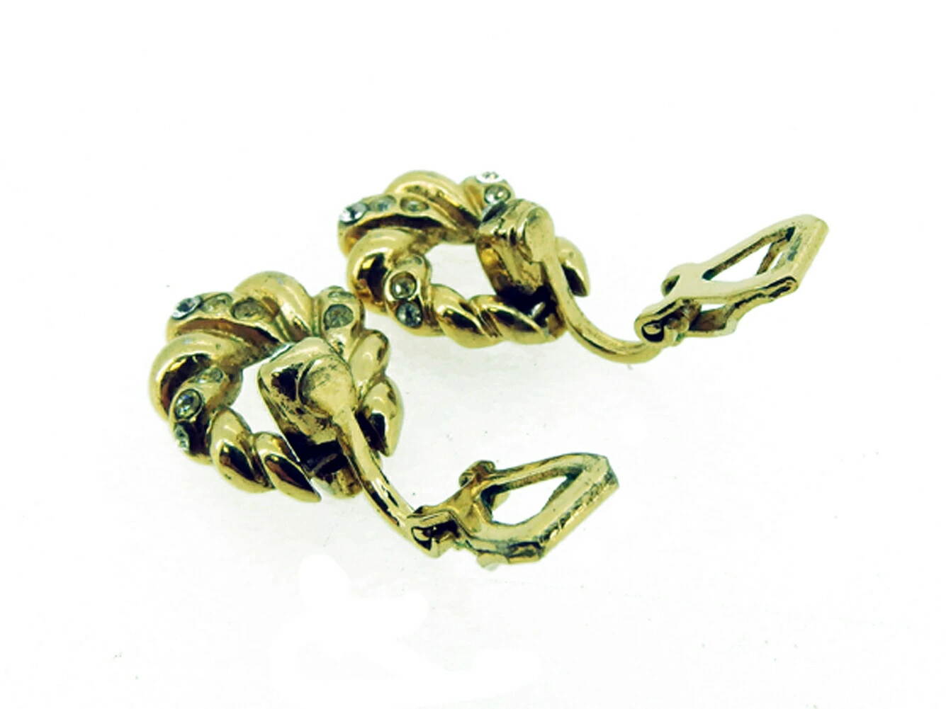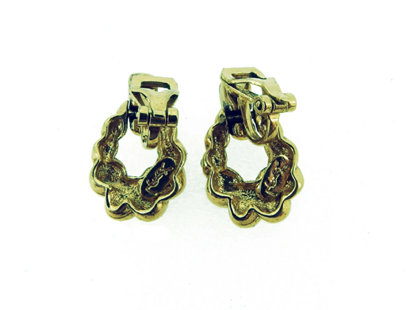 [Rakuten Fashion THE SALE ★ Up to 50% Off] Saint Laurent Twist Motif Earrings with Rhinestones, Gold, Men's, Pre-owned, High-End, Vintage