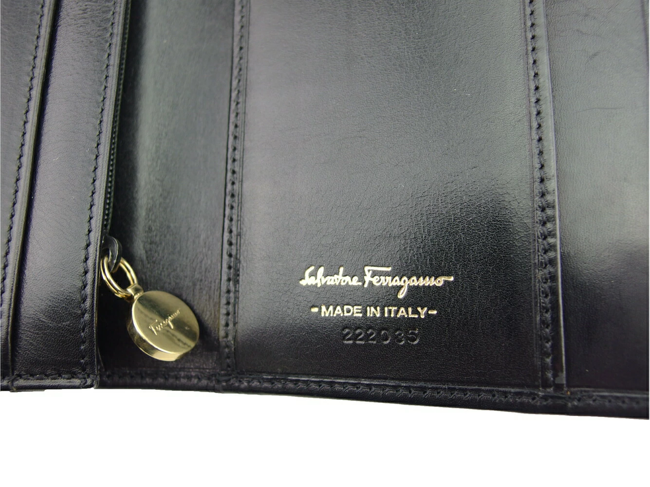 [Rakuten Fashion THE SALE ★ Up to 50% Off] Salvatore Ferragamo Gancini Long Wallet in Black and Gold, Men's, Pre-owned, High-End, Vintage