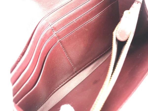| コンディション | 全体の状態詳細:ダメージはありますが、比較的良いコンディションです。 社外リペア跡(スレ色着色)。小銭入れに、スレ&黒ずみあり。その他 スレ&汚れ(内側&札入れ&カード入れ&ポケットもあり) 傷(内側) コバヒビ割れ(上角) 金具傷・ハゲ コバハガレ(ファスナープル革) などの使用感があります。 |