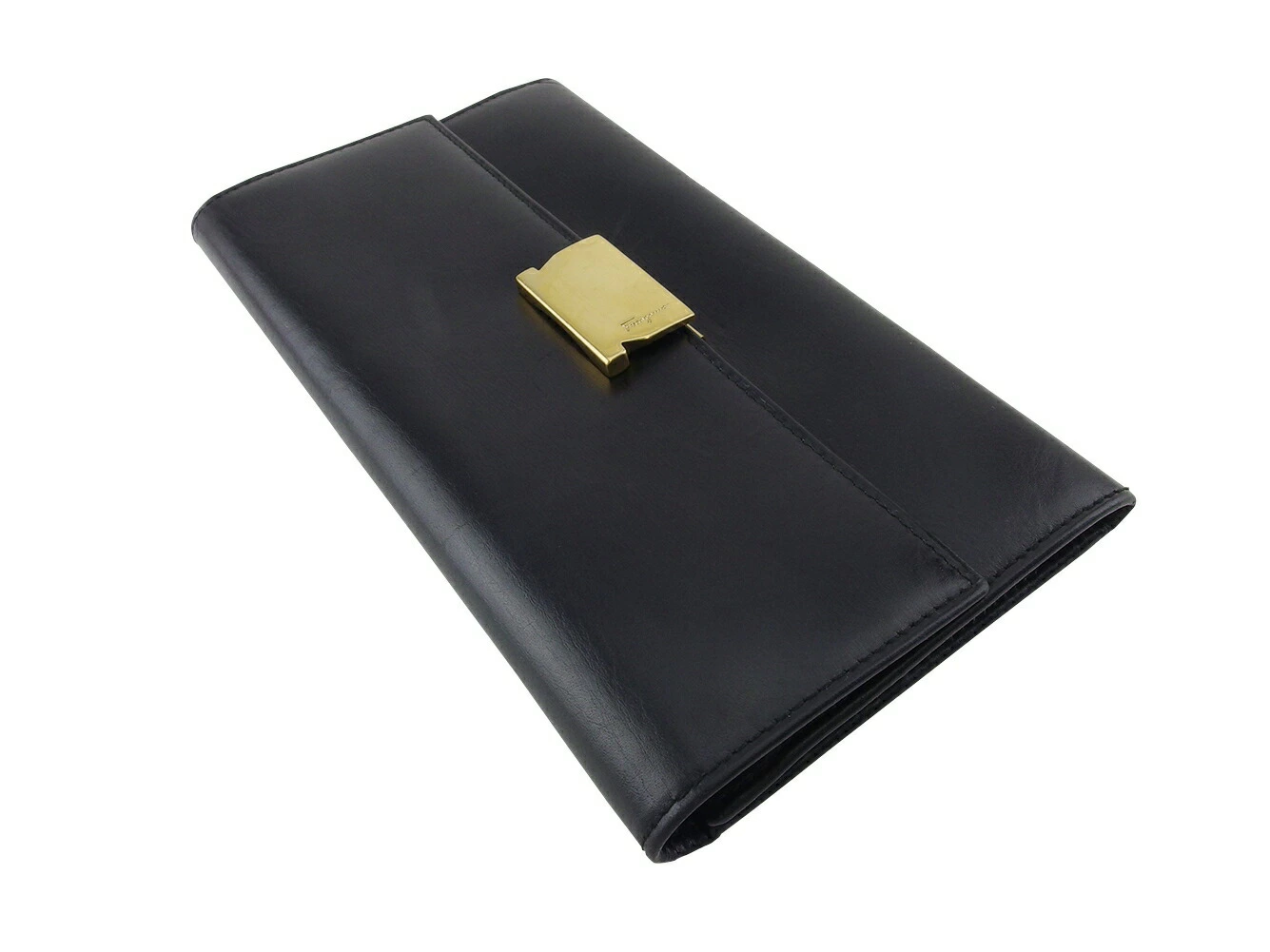 [Rakuten Fashion THE SALE ★ Up to 50% OFF] Salvatore Ferragamo Gancini Long Wallet in Black and Gold, Women's, Pre-owned, High-End Vintage