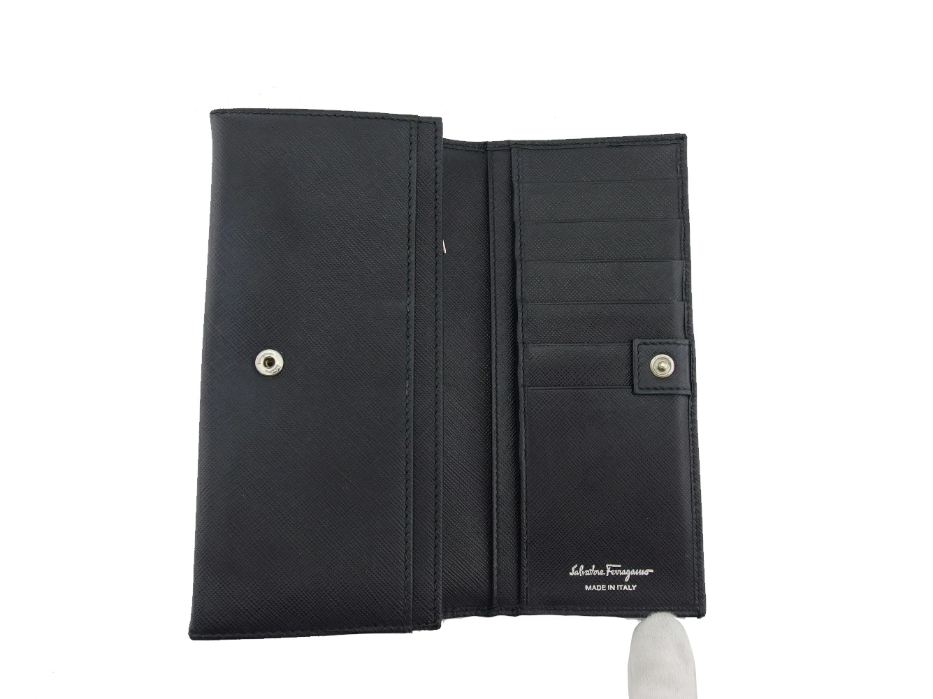 [Rakuten Fashion THE SALE ★ Up to 50% OFF] Salvatore Ferragamo Gancini Long Wallet in Gray and Black, Women's, Pre-owned, High-End, Vintage