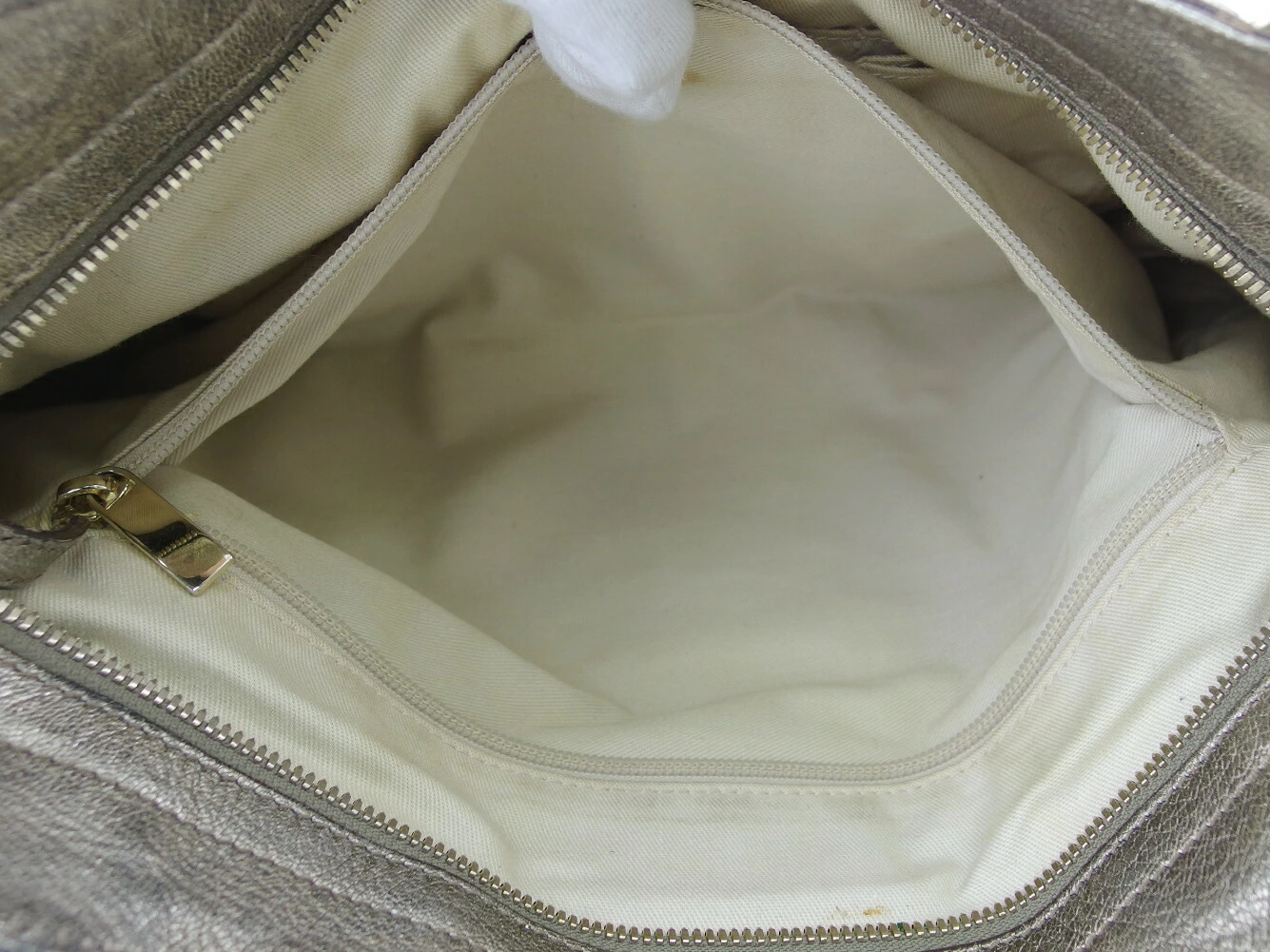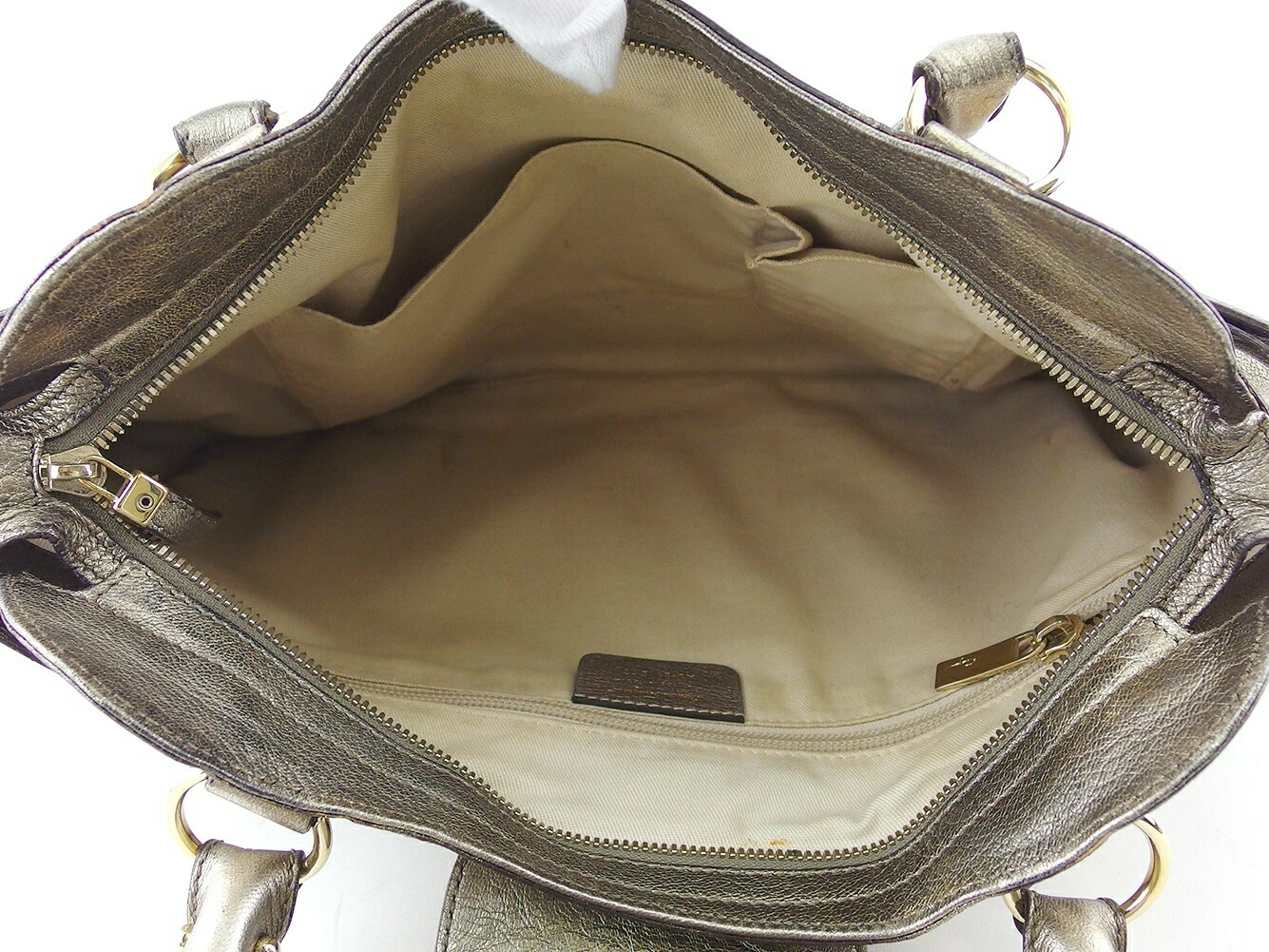 | コンディション | 全体の状態詳細:まだまだお使いいただけます。 社外リペア跡(外側着色)あり。その他 スレ&汚れ(内側&ポケットもあり) シミ&ペン跡(内側) 金具傷・ハゲ コバヒビ割れ(ハンドル&ファスナープル革) ラメハガレ などの使用感があります。 |