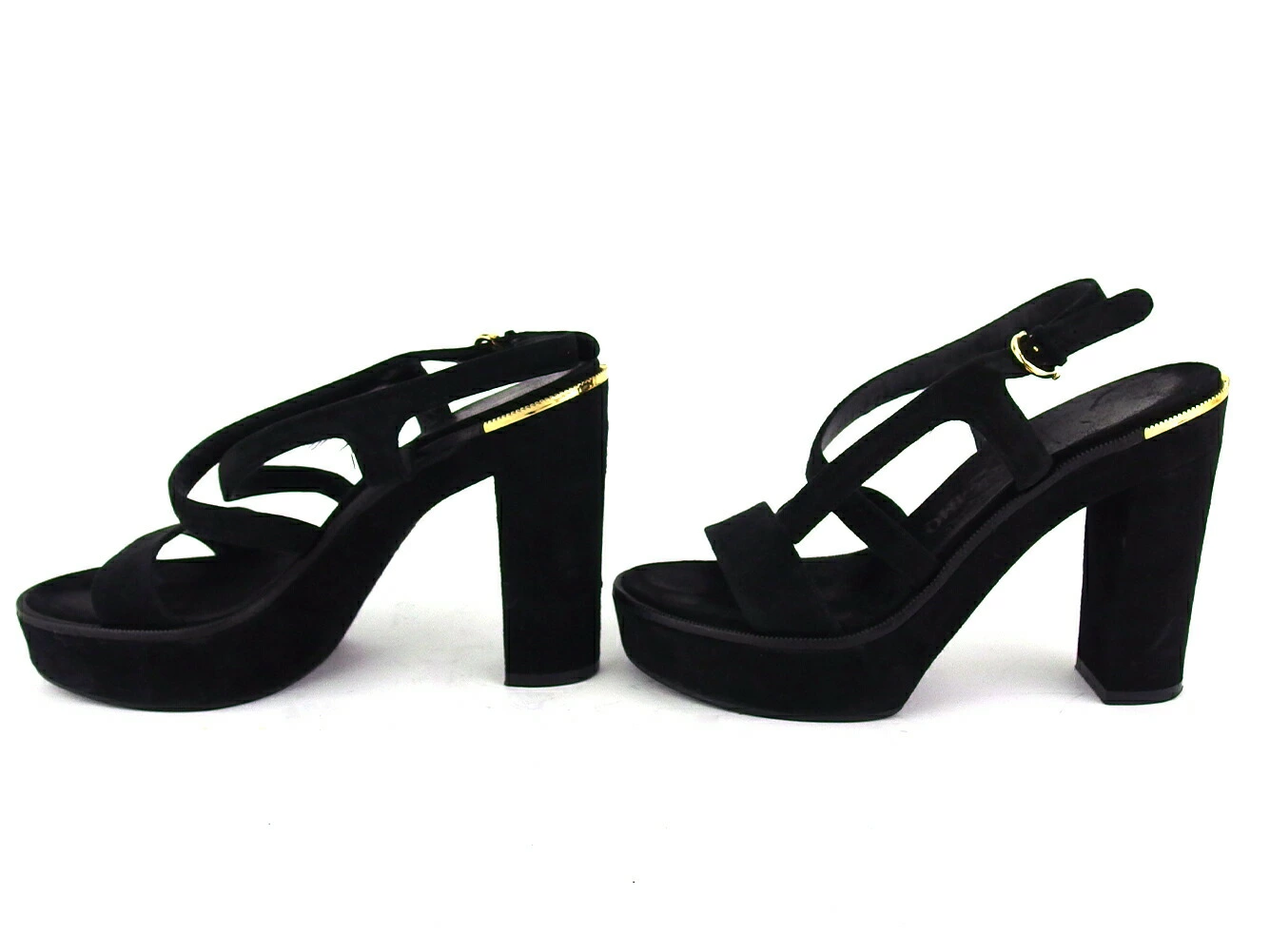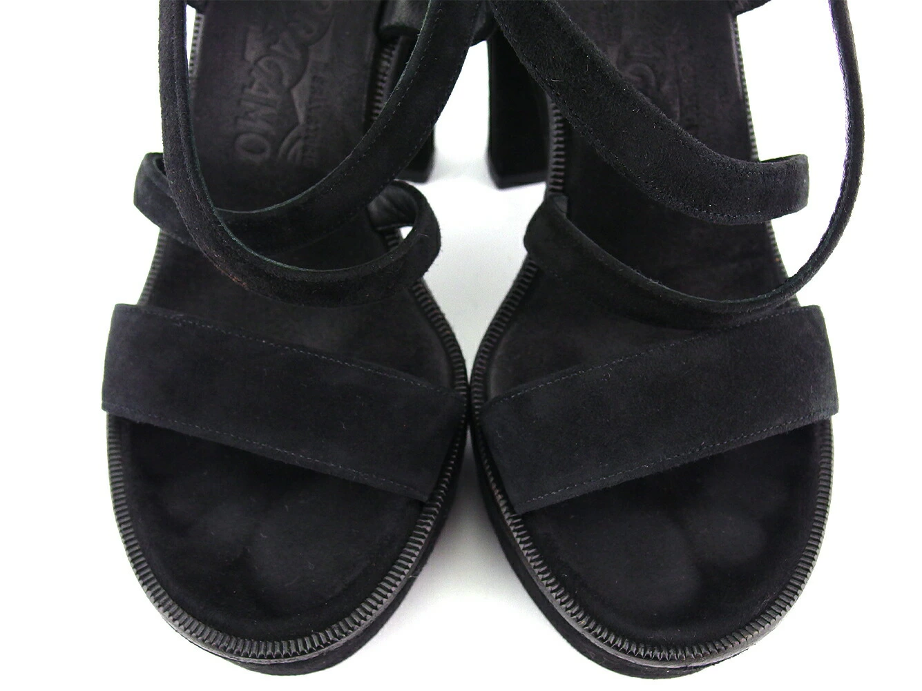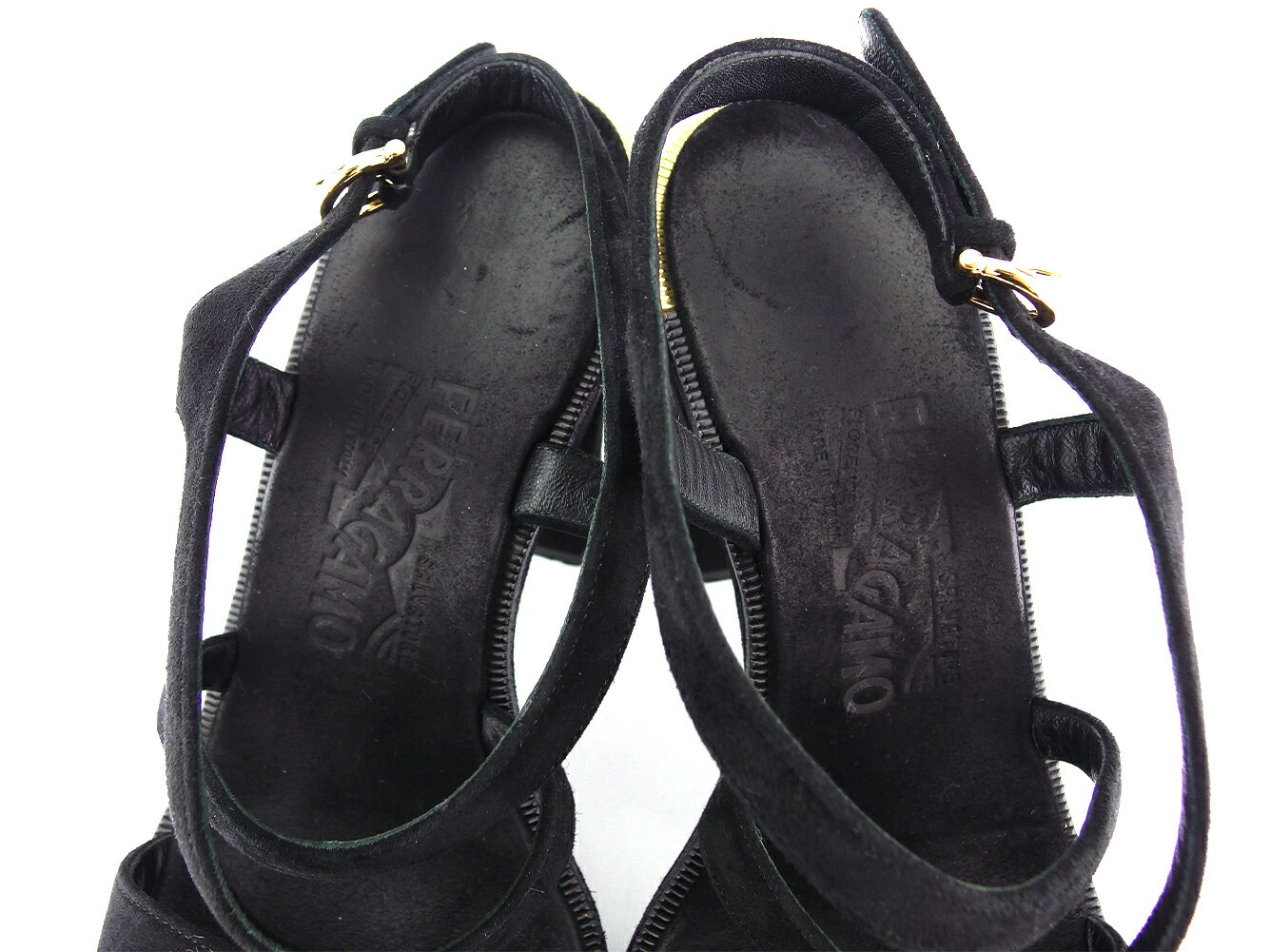 [Rakuten Fashion THE SALE ★ Up to 50% Off] Salvatore Ferragamo Sandals with Cross Design, #5C Chunky Heel, Black and Gold, Men's, Pre-owned, High-End Brand, Vintage