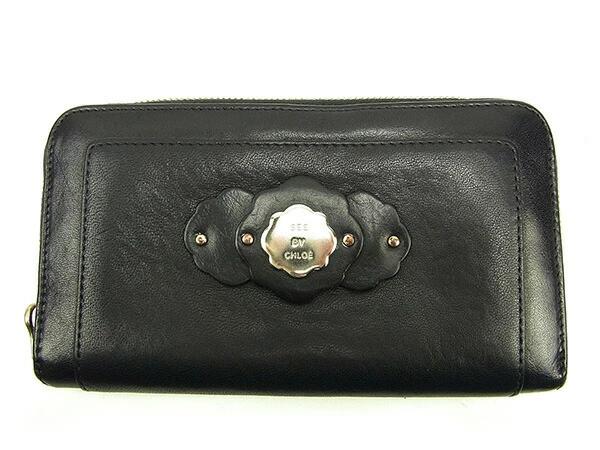 [Rakuten Fashion THE SALE ★ Up to 50% Off] SEE BY CHLOE Long Wallet with Logo Plate, Black and Silver, Women's, Pre-owned, High-End Brand, Vintage