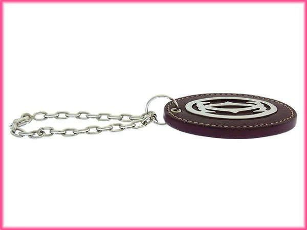 [Rakuten Super Sale ★ Up to 50% Off] Cartier Keychain with 2C Motif, Bordeaux and Silver, Women's, Pre-owned, High-End, Vintage