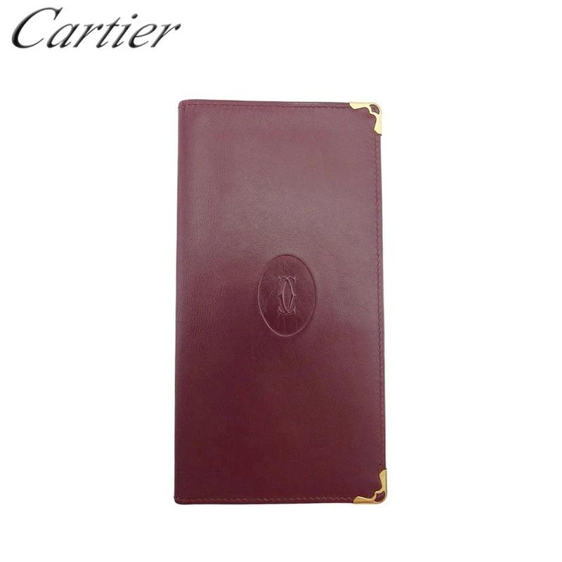 [Rakuten Super Sale ★ Up to 50% Off] Cartier Must Line Wallet with Square Plate, Bordeaux Gold, Men's, Pre-owned, High-End Brand, Vintage