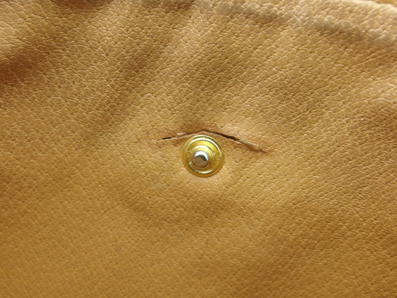 | コンディション | 全体の状態詳細:かなりのダメージですがグランジ感をお求めの方におすすめです。社外リペア跡(内ボタンホックポケット破れ2.5cm程接着、パイピング着色)あり。その他 スレ&汚れ(内側&ポケットもあり) 傷 シミ(外ポケット) 黒ずみ 金具傷・ハゲ 外ポケットファスナー重め ヒビ割れ(ストラップ) 破れ(主に外ポケット2cm程&内側上部3ヵ所程&角パイピング) などの使用感があります。 |