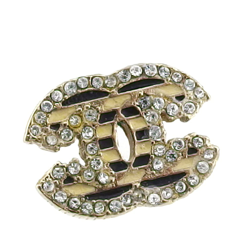 [Rakuten Super Sale ★ Up to 50% Off] Chanel Earrings (Single) Coco Mark Border Rhinestone Beige Black Women's Pre-owned CHANEL Brand High-End Vintage