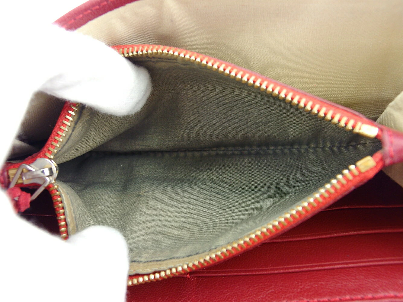 | コンディション | 全体の状態詳細:まだまだお使いいただけます。社外リペア跡(スレ色着色、ファスナープル取り付け、角破れコーティング)。小銭入れに、スレ 黒ずみ(強) あり。その他 スレ&汚れ(内側&札入れ&カード入れ&ポケットもあり) 傷(内側もあり) 角スレ 金具ハゲ ヒビ割れ小(上角縁) 色移り跡(手前ポケット) などの使用感があります。 |