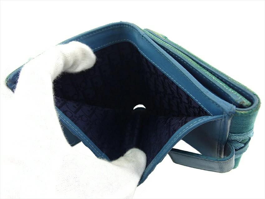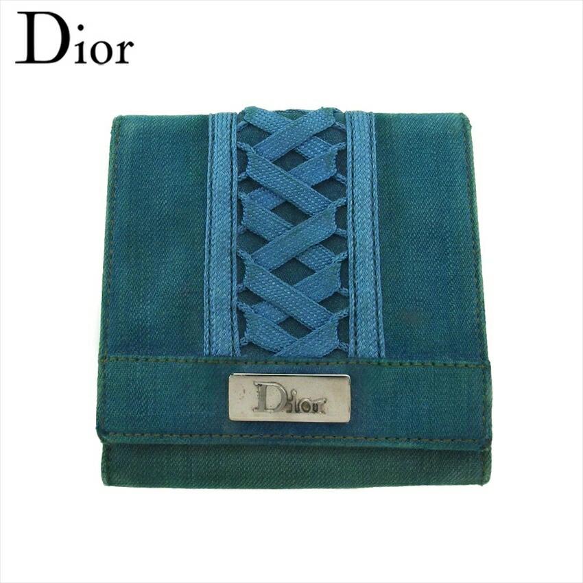 [Rakuten Super Sale ★ Up to 50% Off] Dior Bi-fold Wallet, Denim, Lace-Up, Blue, Green, Silver, Men's, Pre-owned, High-End, Vintage