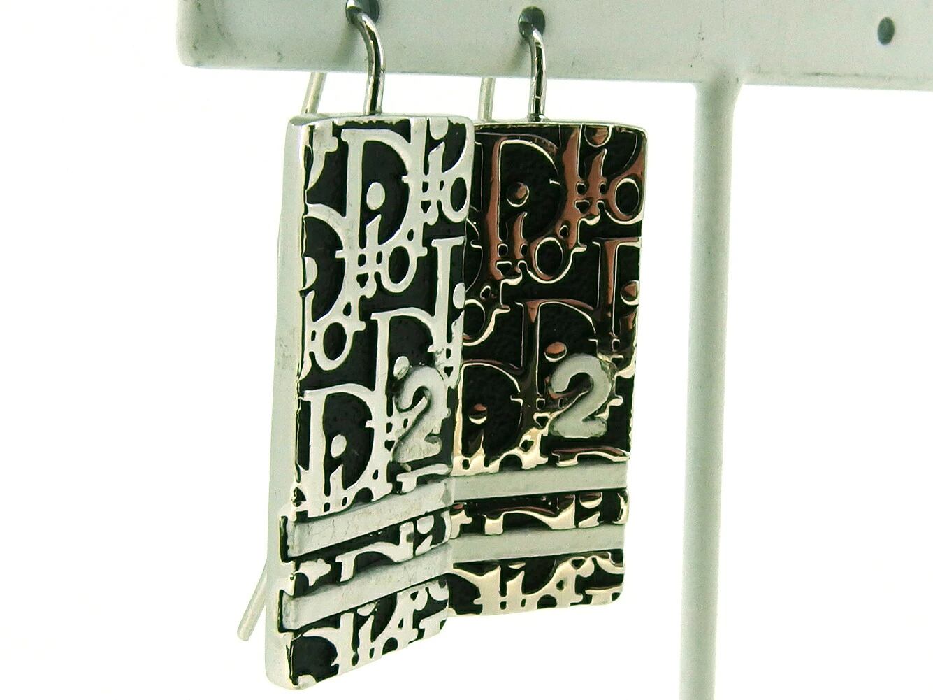 [Rakuten Super Sale ★ Up to 50% Off] Dior Trotter Plate Earrings in Silver, Black, and White. Men's. Pre-owned. High-end vintage.
