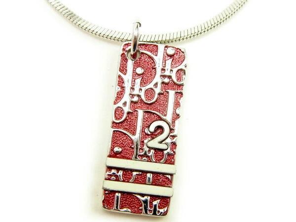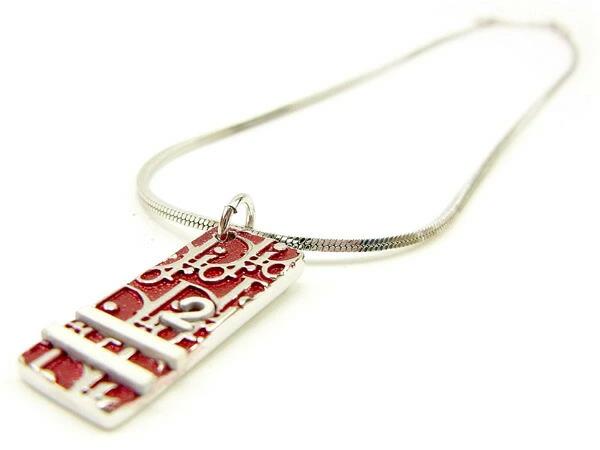 [Rakuten Super Sale ★ Up to 50% Off] Dior Trotter Plate Necklace in Silver, Bordeaux, and White. Women's. Pre-owned. High-end vintage.