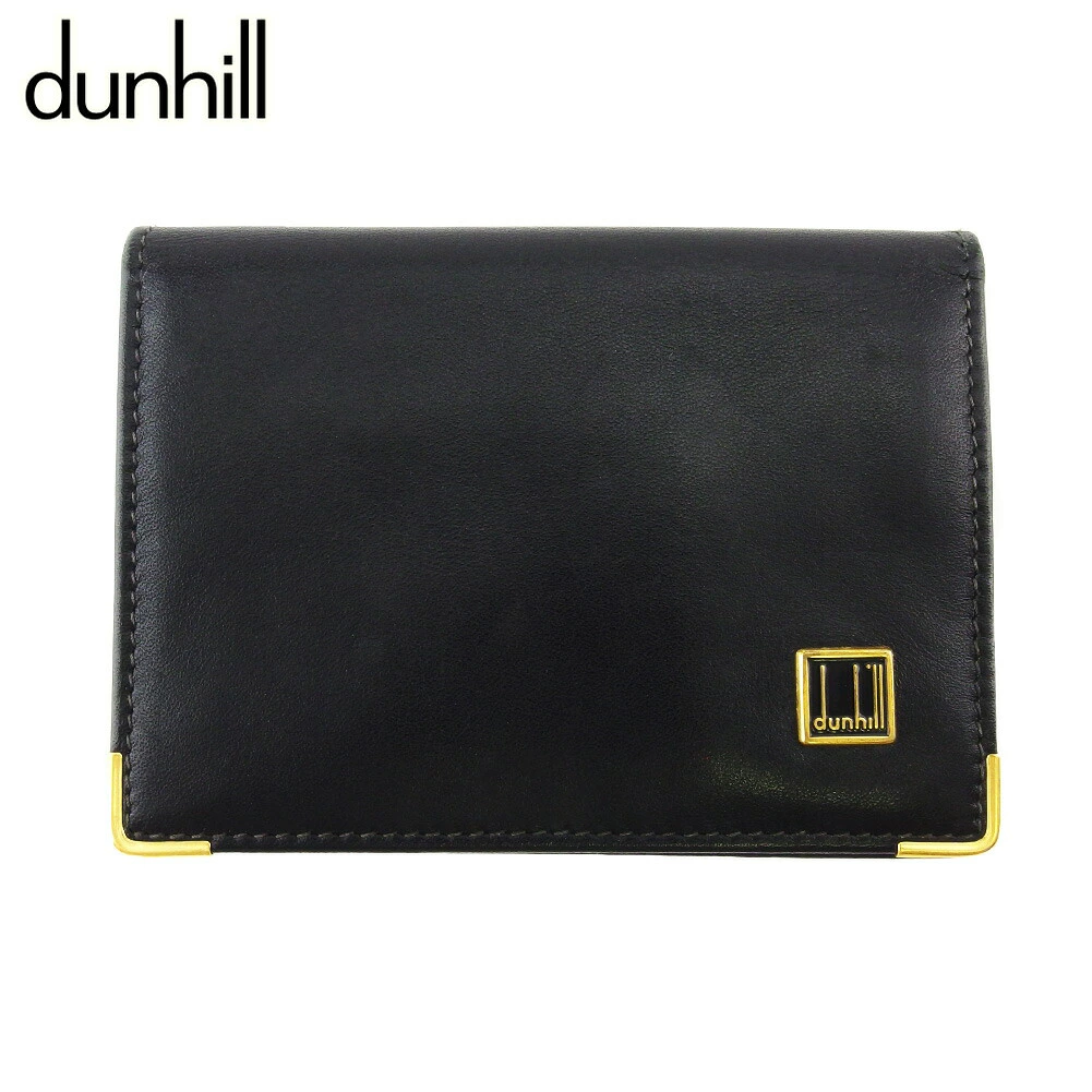 [Rakuten Super Sale ★ Up to 50% Off] Dunhill Card Case with Logo Plate, Black and Gold, Men's, Pre-owned, High-End Brand, Vintage