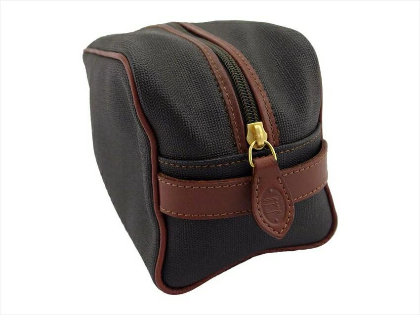 [Rakuten Super Sale ★ Up to 50% Off] Dunhill Clutch Bag Herringbone Gray Brown Gold Men's Pre-owned High-End Vintage