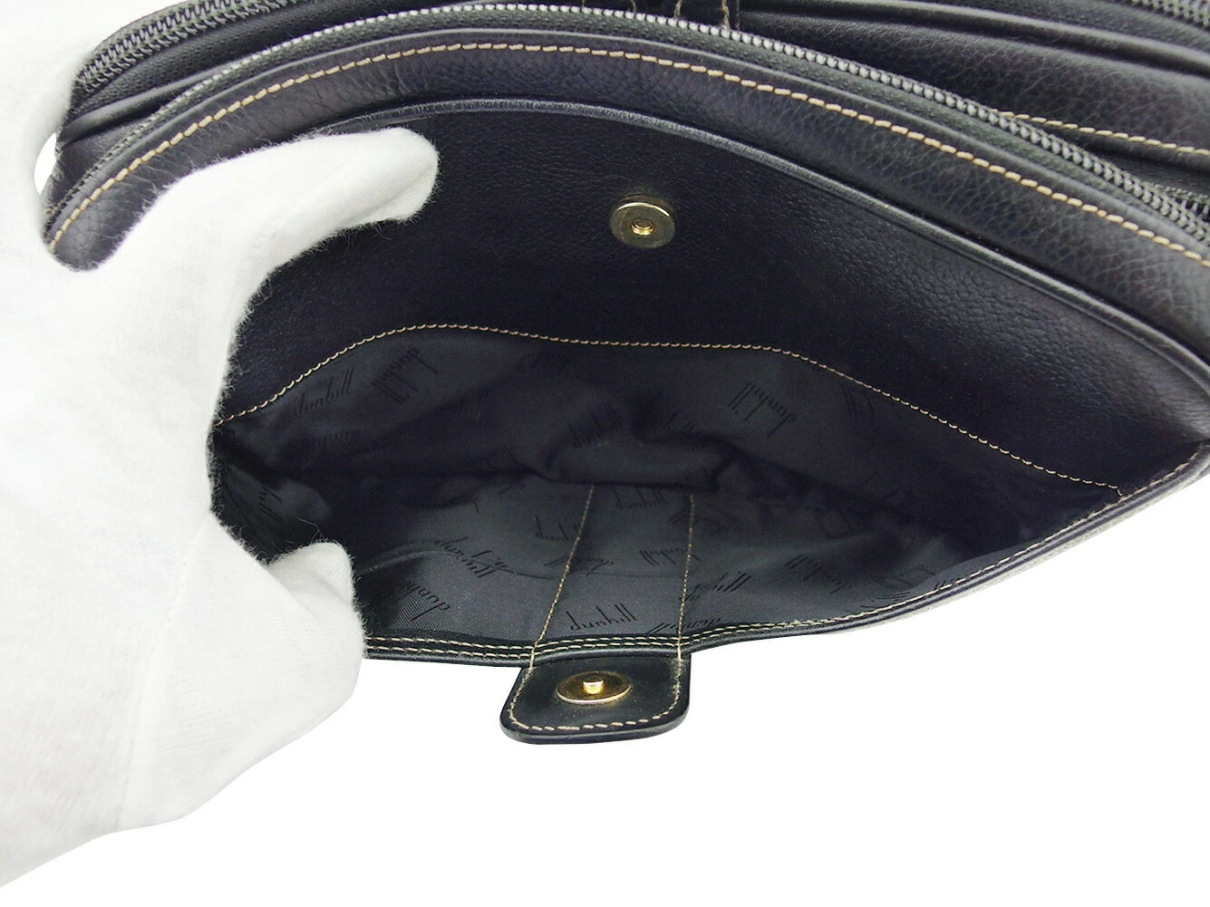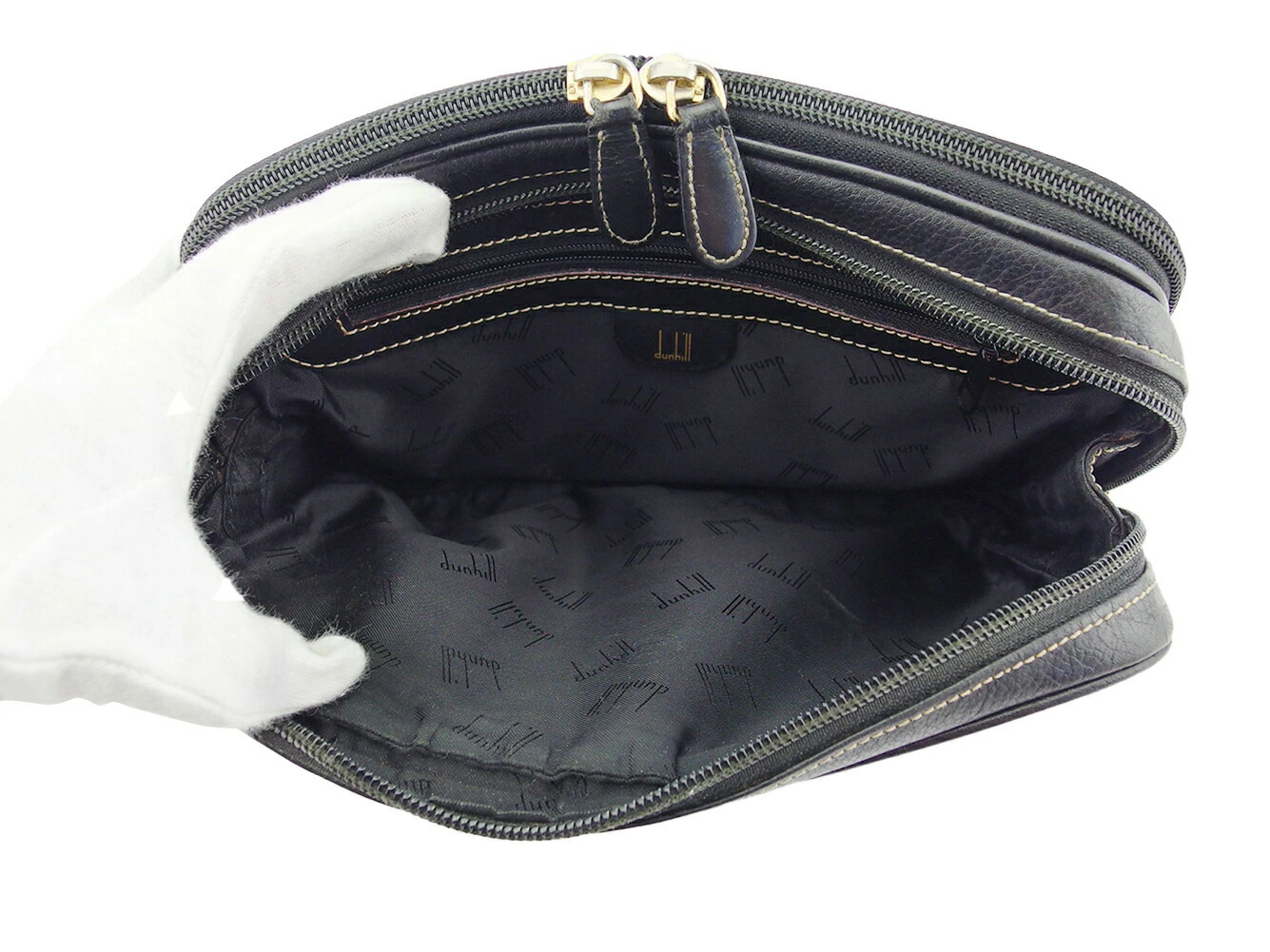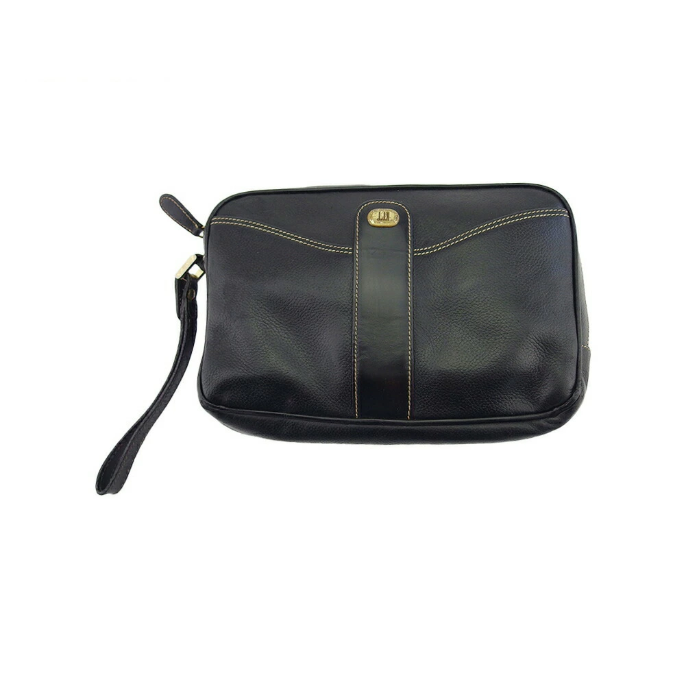 [Rakuten Super Sale ★ Up to 50% Off] Dunhill Clutch Bag with Logo Plate, Black and Gold, Women's, Pre-owned, Dunhill, High-End Brand, Vintage