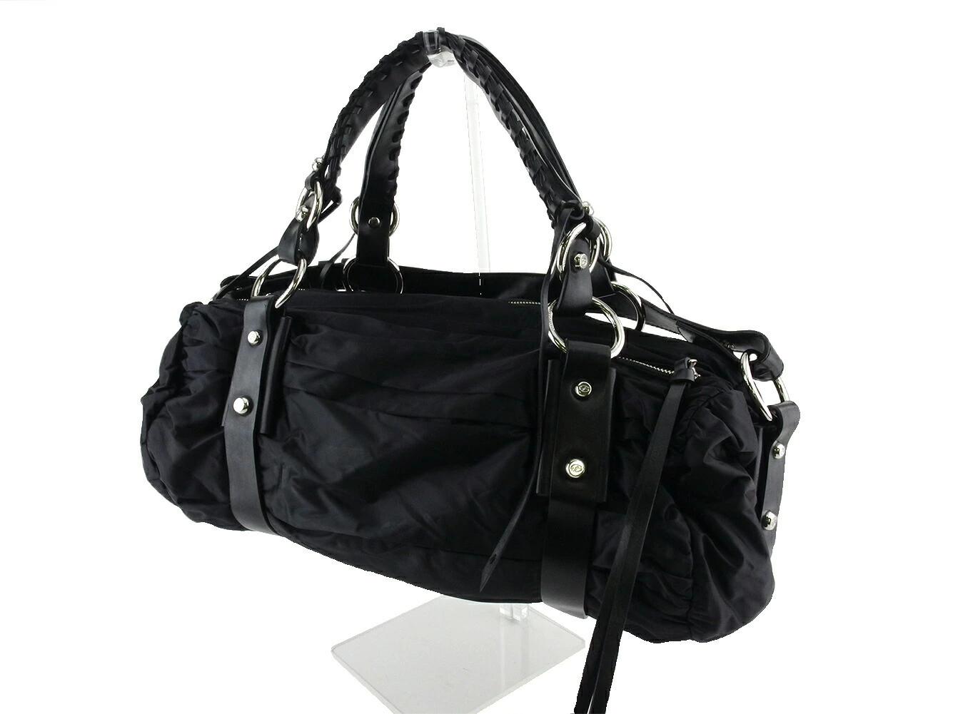 [Rakuten Super Sale ★ Up to 50% Off] Francesco Biasia Shoulder Bag with Shirring, Black and Silver, Women's, Pre-owned, High-End, Vintage