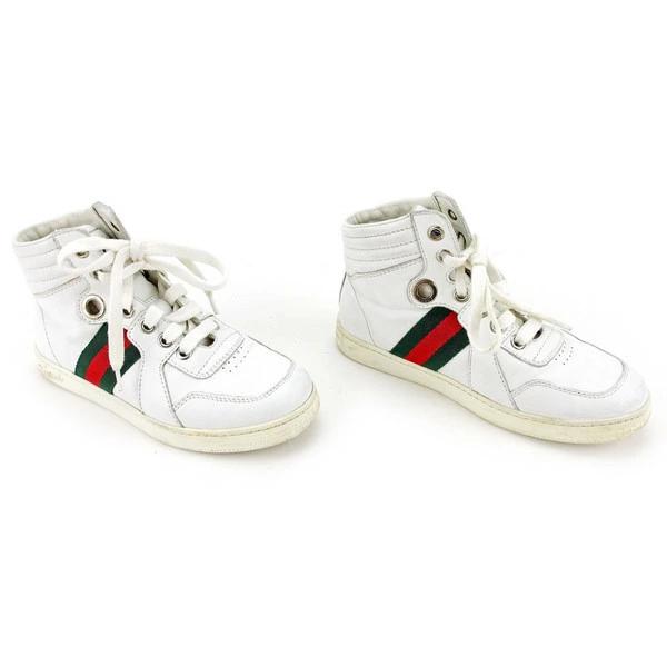 [Rakuten Super Sale ★ Up to 50% Off] Gucci Kids' Webbing Line #30 High-Top Sneakers in White, Green, and Red. Pre-owned, Vintage, High-End Brand.