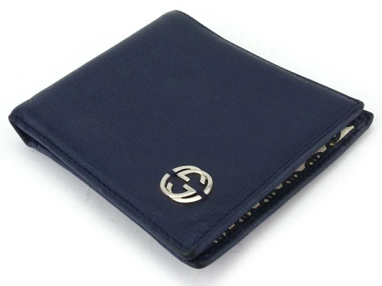 [Rakuten Super Sale ★ Up to 50% Off] Gucci Men's Navy Bi-fold Wallet, Pre-owned, High-End Vintage